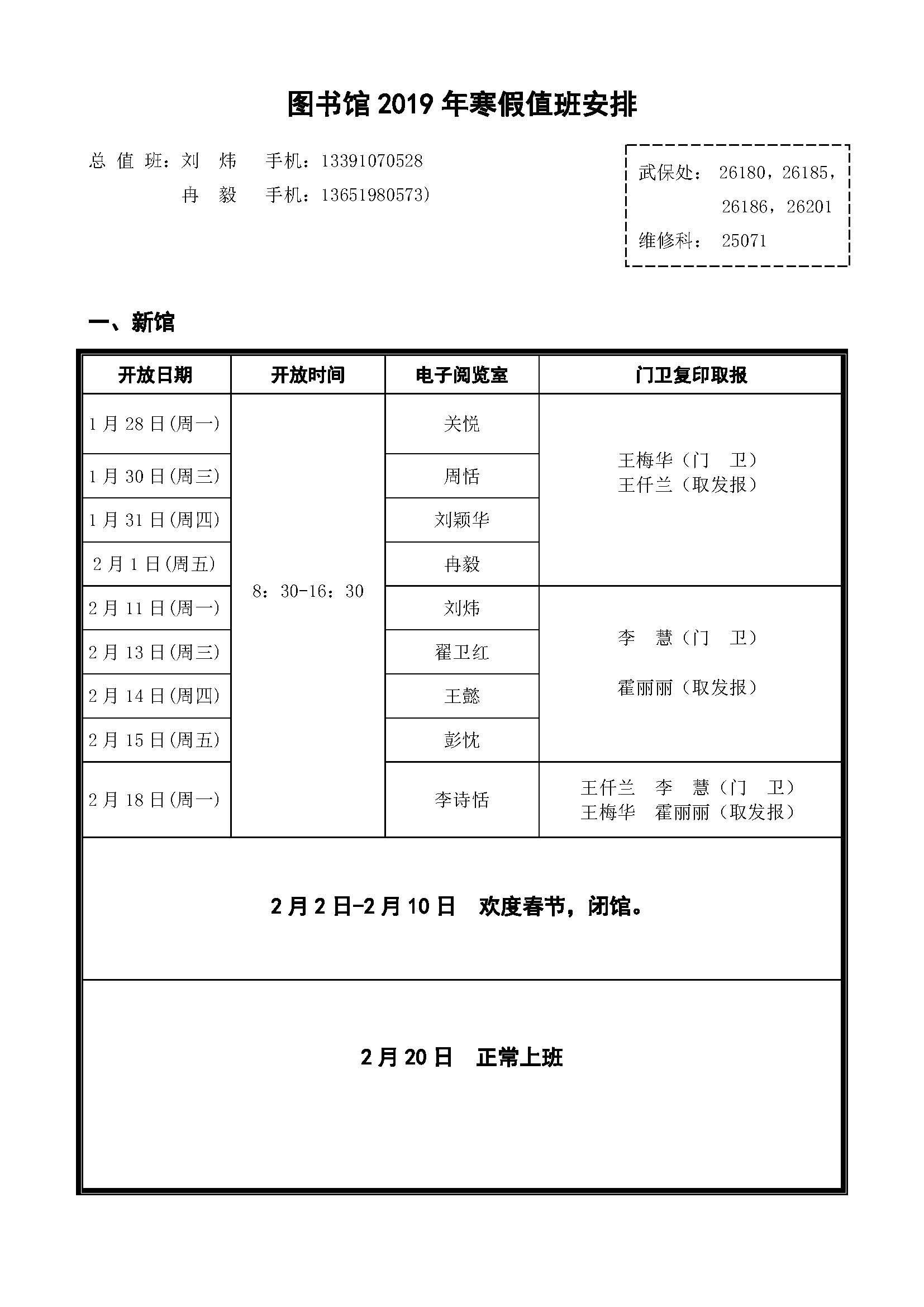 2. 2019年2月4日至2月10日:法定节假日各场馆闭馆(正常教学训练除外)