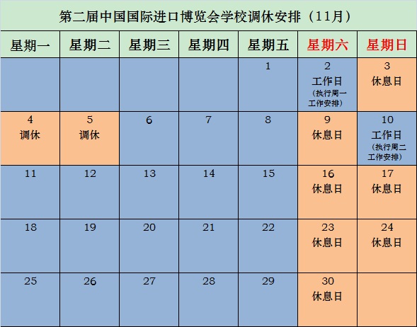 11月2日(周六)、11月10日(周日)调整为工作日。