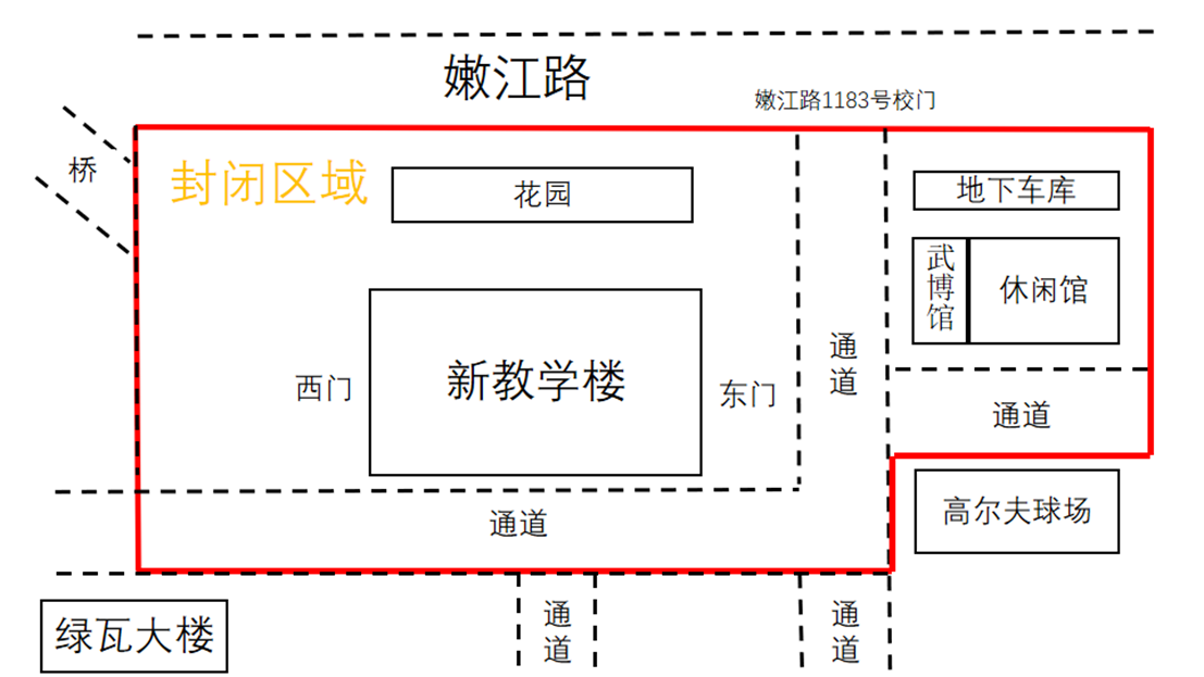 1.12月23日(星期四)12:30—25日(星期六)0时,封闭考场及相关区域,具体范围包括嫩江路1183号校门、武术博物馆、休闲馆(含地下车库)、新教学楼及周边区域(附示意图)。