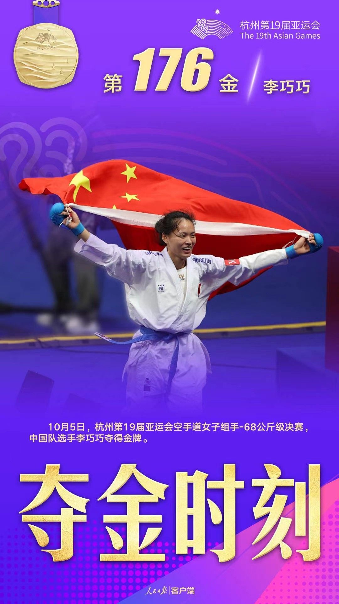 杭州亚运会空手道女子组比赛开赛后,李巧巧先是在八分之一决赛以5:0的巨大优势打败巴基斯坦选手法哈尔·温·妮萨。四分之一决赛中,她又以3:0的比分轻松战胜中国台北选手赵柔。半决赛面对巴勒斯坦选手哈拉·卡迪,她更是打出了9:0的巨大分差,以压倒式胜利零封对手,成功晋级决赛。金牌争夺战中,面对哈萨克斯坦选手劳拉·阿利库尔,李巧巧沉着冷静,打法积极主动,利用精准的拳法频频得分。在最后的40秒时间,对手发起的激烈进攻,李巧巧依然稳住阵脚,利用自身优势,实现有效击打,最终以4:0再次零封对手,最终夺得金牌!