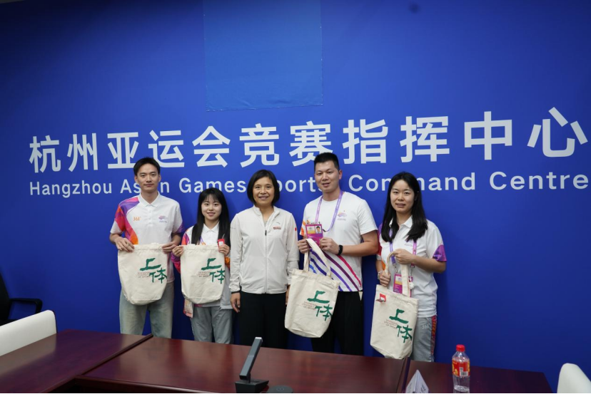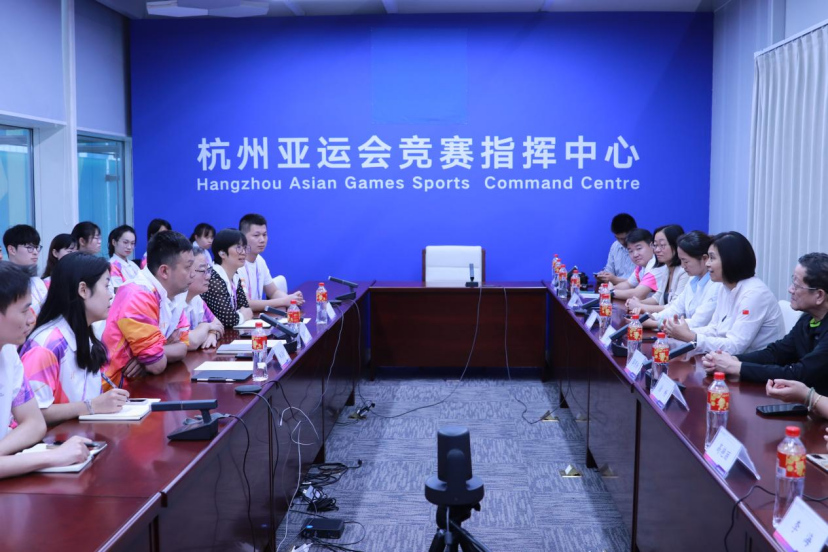 校领导来指挥中心看望我们,这无疑是给处于亚运会冲刺阶段的大家打上了一剂强心剂。从五月底来到杭州也已经将近五个月了,作为“亚运大学”的插班生,在领导和师兄师姐的帮助下,看到了很多,也学到了很多。我的工作涉及每个运动项目赛程的制作与变更,这也使得我有更好的机会去了解每一个项目,拓展了我的体育视野。在这样一场盛大的综合性运动会中,每一个环节,每一个个体都是非常重要的。我们也将带着学校和老师们的殷切关怀与期望,站好最后一班岗,争取能为亚运会的圆满成功添一块砖、加一块瓦。