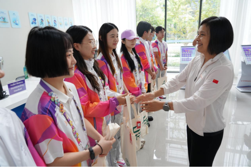 随后,毛丽娟来到杭州亚运村竞赛服务中心慰问了夏敏、房纹萱两位技术官员代表以及正在岗位上工作的十多名伟德师生。毛丽娟表示,大家在过去的五个多月里为杭州亚运会的平稳运行做出了重要贡献,各项工作受到亚组委相关部门的高度评价,希望团队克服困难,再接再厉,抓住机会,将课堂所学的理论知识与本次实践相结合,学以致用,圆满完成亚运保障任务。