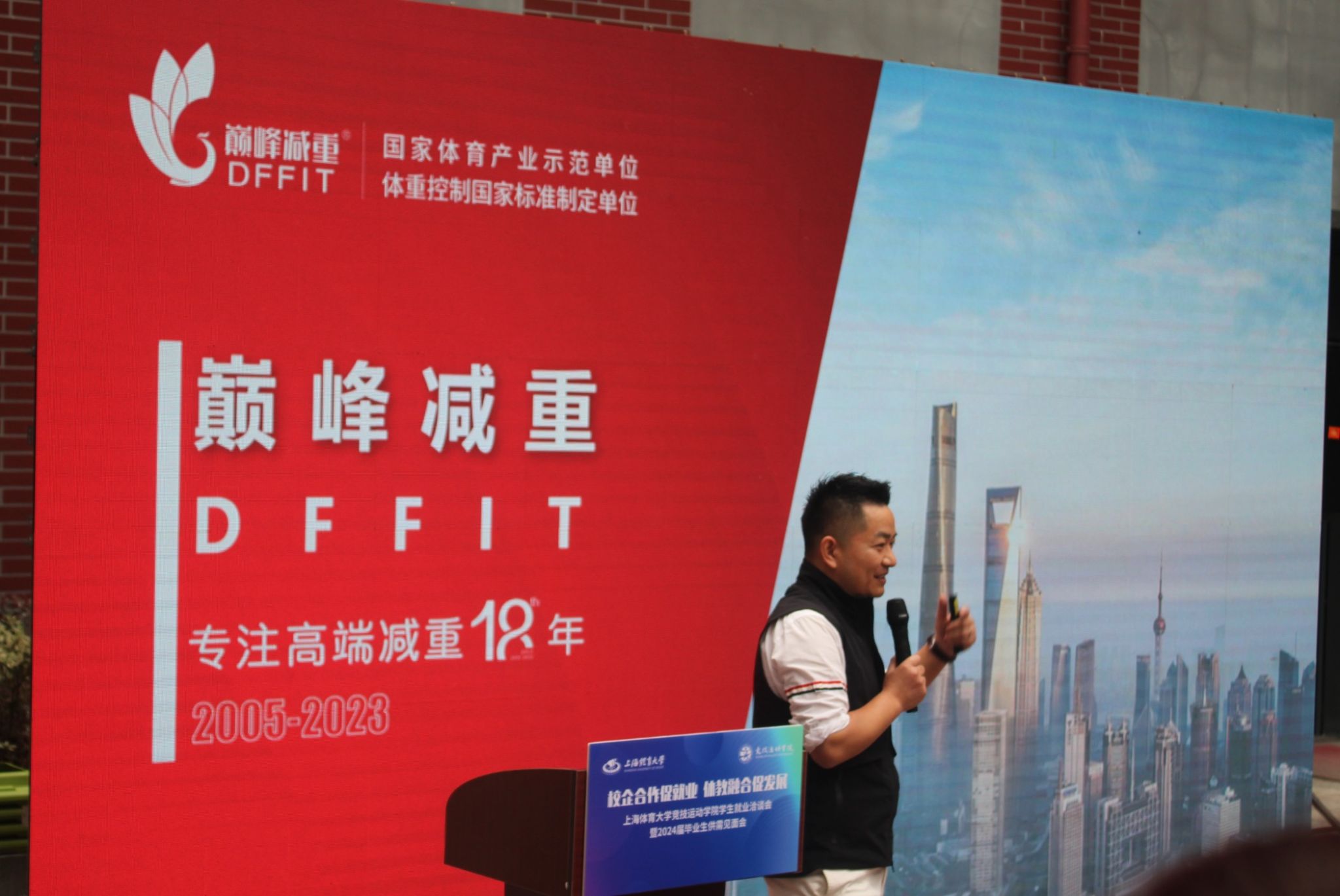 上海巅峰健康科技股份有限公司人力资源部部长冯磊作为企业代表,介绍了体育产业和健身领域面临的瓶颈、挑战及新的发展机遇,他指出,当前体育领域急缺专业人才,号召毕业生们积极投身健康中国建设,共同助力体育产业健康、持续发展。