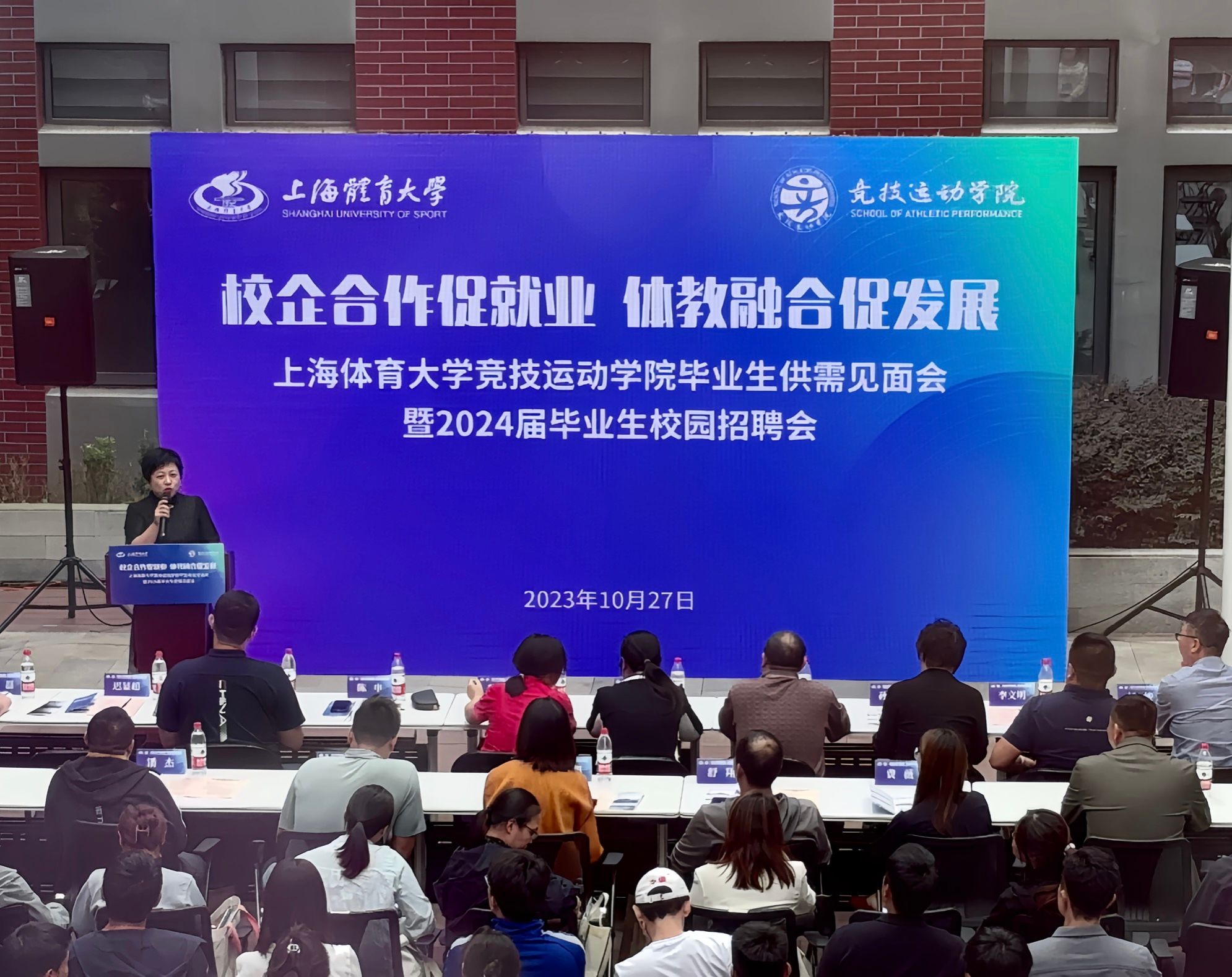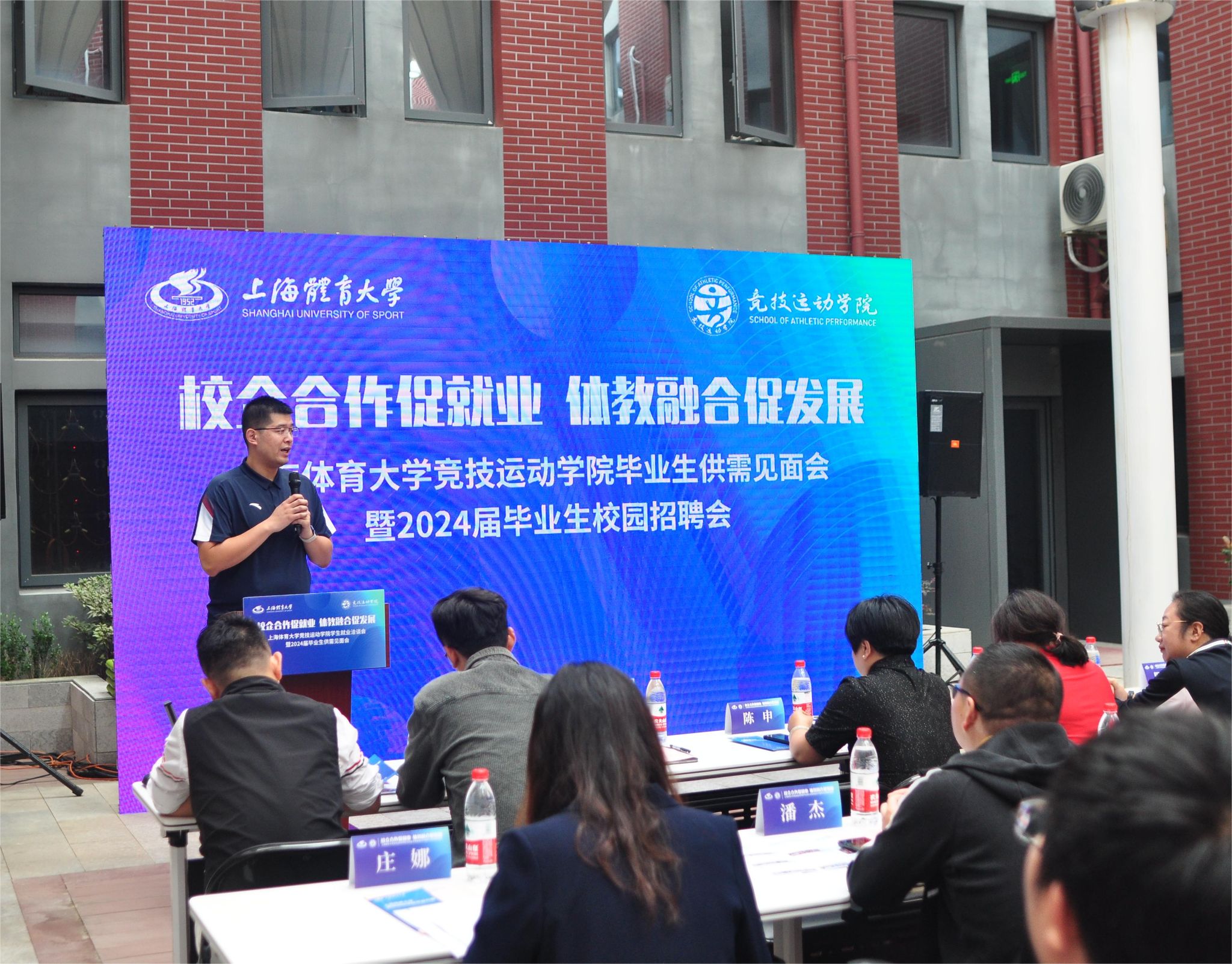 本网讯 10月27日,竞技运动学院毕业生供需见面会暨2024届毕业生校园招聘会在伟德源自英国始于1946徐汇校区顺利举行。上海市竞技体育训练管理中心人事处处长刁亚男、徐汇区体育局副局长陈申、徐汇区教育局人才服务中心主任孙雪琳,以及九亭第二小学、平和学校、杨峻俱乐部、巅峰、跃动、星砼体育、珩鑫体育、迅鹿体育、新艇教育、龙嬉体育等多家用人单位负责人受邀参加活动,活动由竞技运动学院党委副书记、副院长庄娜主持。