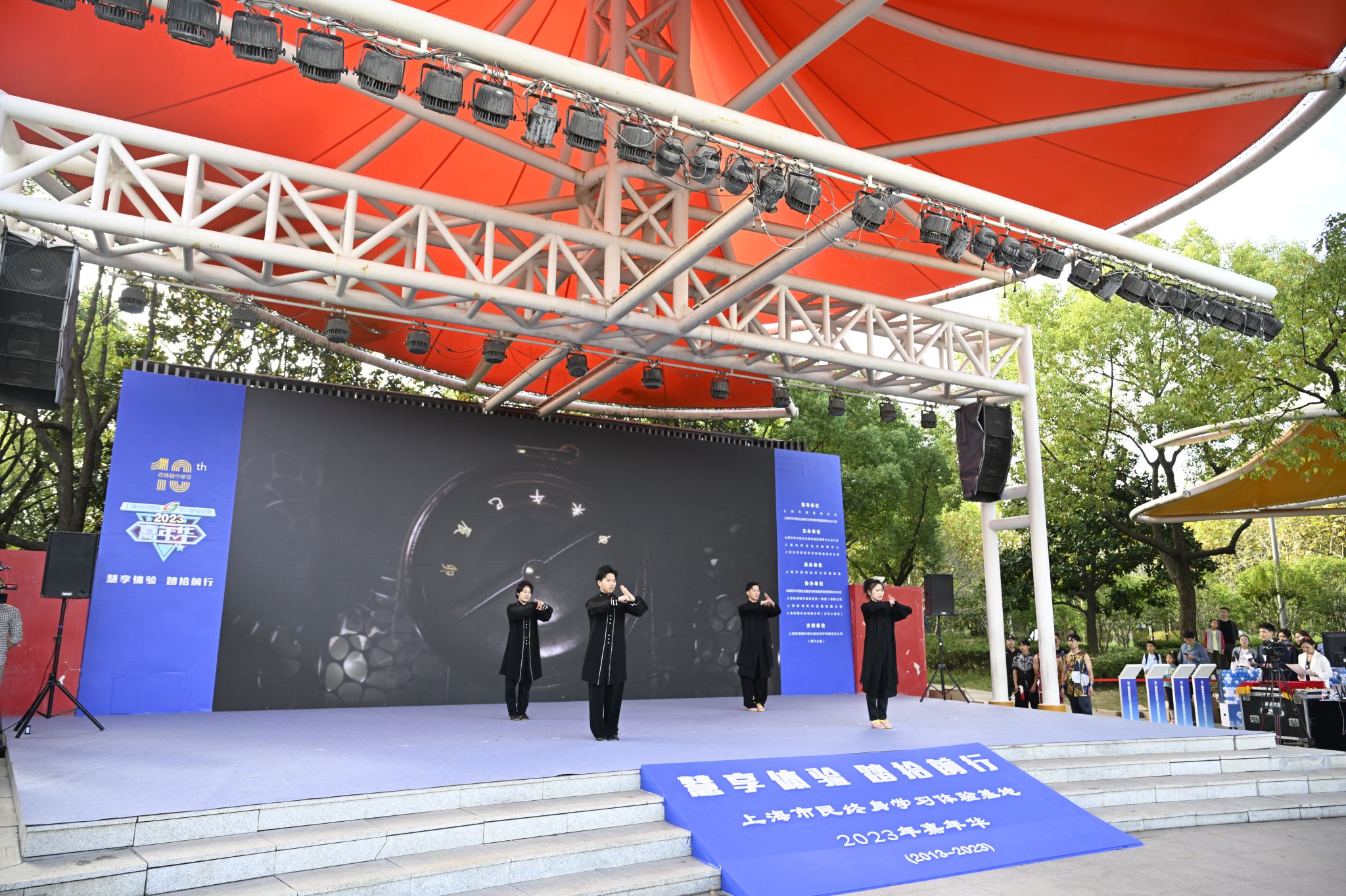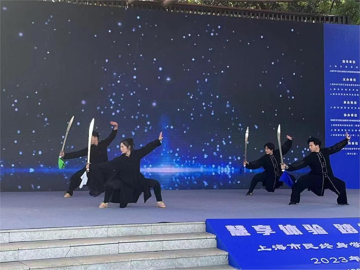 本网讯 10月28日下午,“慧享体验 踏拾前行”2023年上海市民终身学习体验基地嘉年华开幕式在黄兴公园中心广场举行,中国武术博物馆受邀参加。由中国武术博物馆选送的武术表演节目得到市级领导的高度赞赏和市民朋友们的广泛好评,伟德武术学院学子们在开幕式上为观众呈现了精彩绝伦的武术表演。