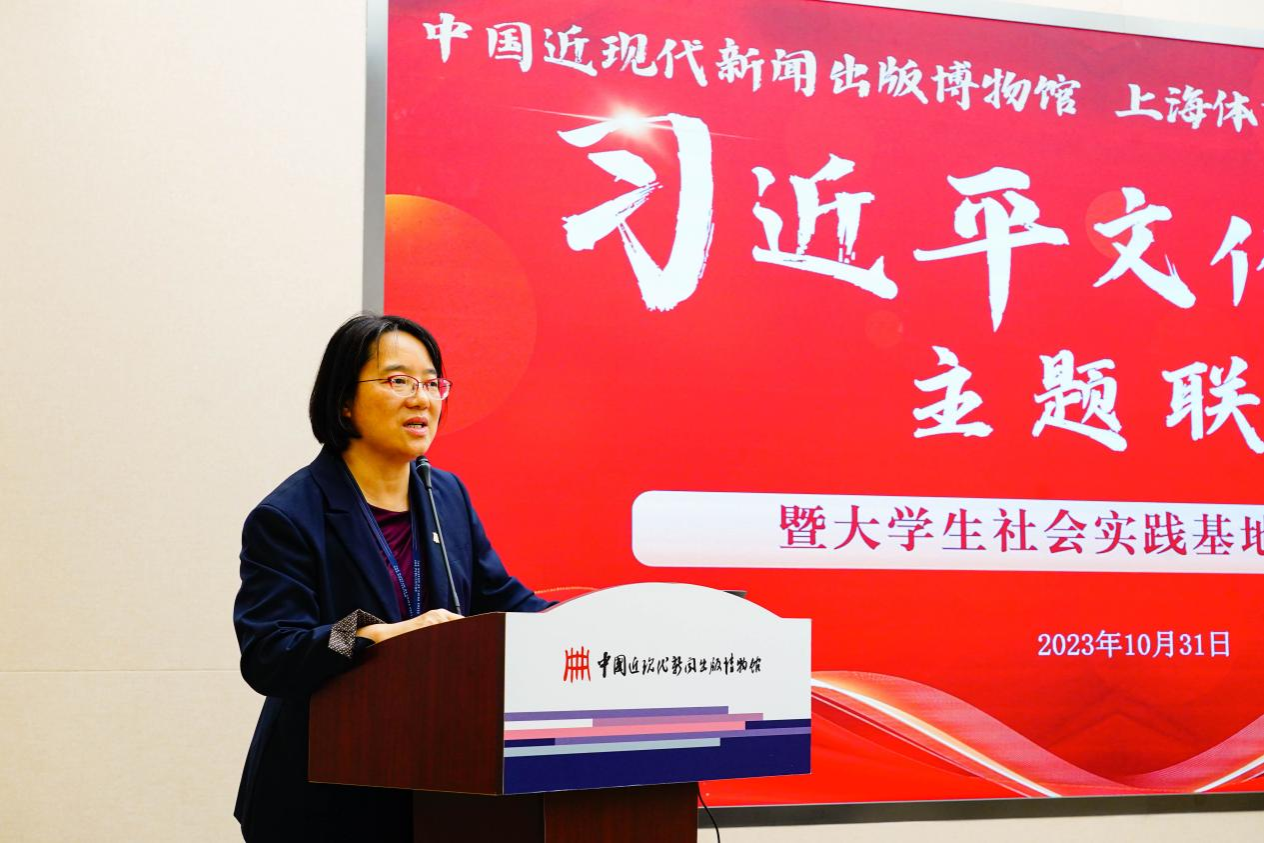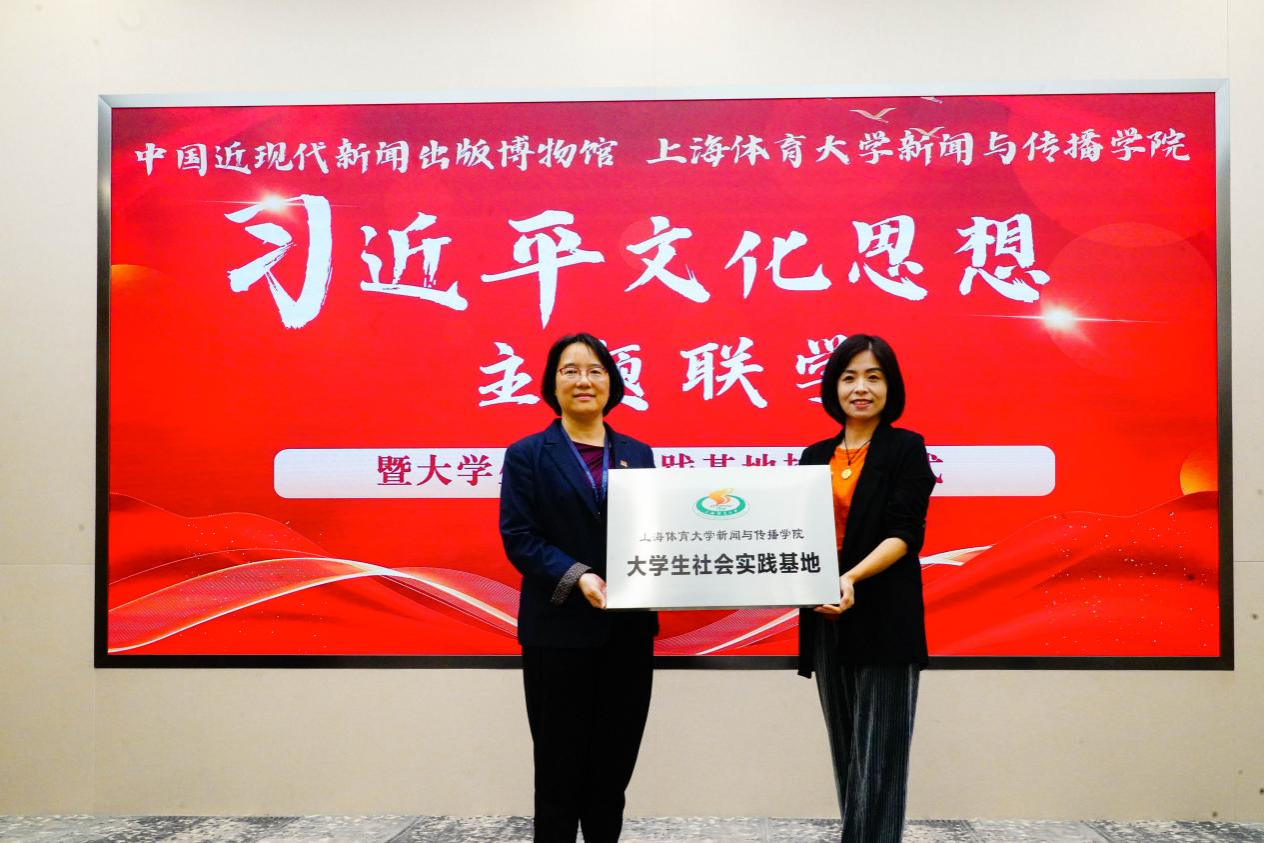 本网讯 为深刻学习习近平文化思想,为学生提供新闻实践机会、促进学生全方位发展,2023年10月31日下午,新闻与传播学院与中国近现代新闻出版博物馆共同举行习近平文化思想主题联学活动暨大学生社会实践基地挂牌仪式。上海韬奋纪念馆、中国近现代新闻出版博物馆副馆长张霞、新闻与传播学院党委副书记、副院长张瑞青、东方卫视知名主持人于飞等出席了活动。活动由中国近现代新闻出版博物馆团支部书记王嫣斐主持展开。