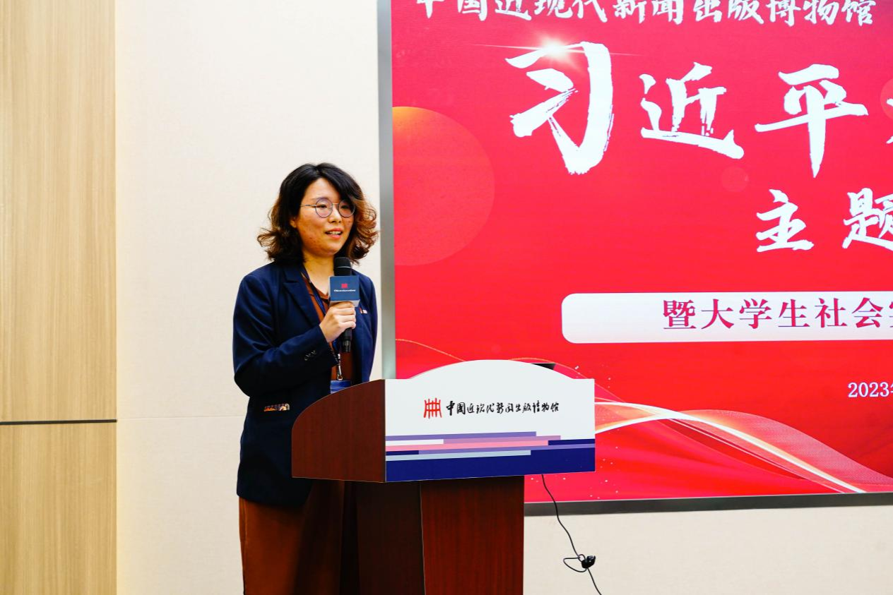 活动开始,张霞对各位参加活动的伟德源自英国始于1946新闻与传播学院的师生表示了热烈欢迎。张霞表示,馆校合作开展实践育人,对于博物馆来说,不仅可以展示丰富的馆藏,还是一个对外宣传的窗口;更是可以为同学们提供更直观、更生动的课堂。她对双方的合作寄予厚望,希望双方共同担负起“以史铸魂,资政育人”的责任,把实践基地建设好利用好,为伟德源自英国始于1946青年学生提供传承红色基因、根植红色血脉、汲取奋进力量的高质量社会实践平台,为中国近现代新闻出版博物馆探索馆校联合、实践发展打下坚实基础,共同努力把实践基地建设成为思想政治教育的红色阵地、高校立德树人的培育阵地、文化建设的品牌阵地,为中国新闻出版事业注入青春力量。