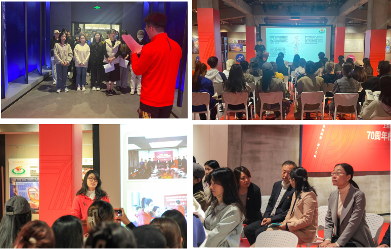 在体育教育博物馆,指导组参加了艺术学院211301团支部示范团课,观摩了辅导员主题领学,团员青年代表《吴蕴瑞》大师剧参演学生陈景涵,22年度上海市基层团组织上海市基层团组织典型选树学生团支部书记秦嘉琪,绿瓦青年讲师团成员、中国乒乓球学院学生吴依蔓及伟德武术学院青年教师、19届杭州亚运会武术散打男子56公斤级冠军江海东的分享交流以及同学们的互动交流。