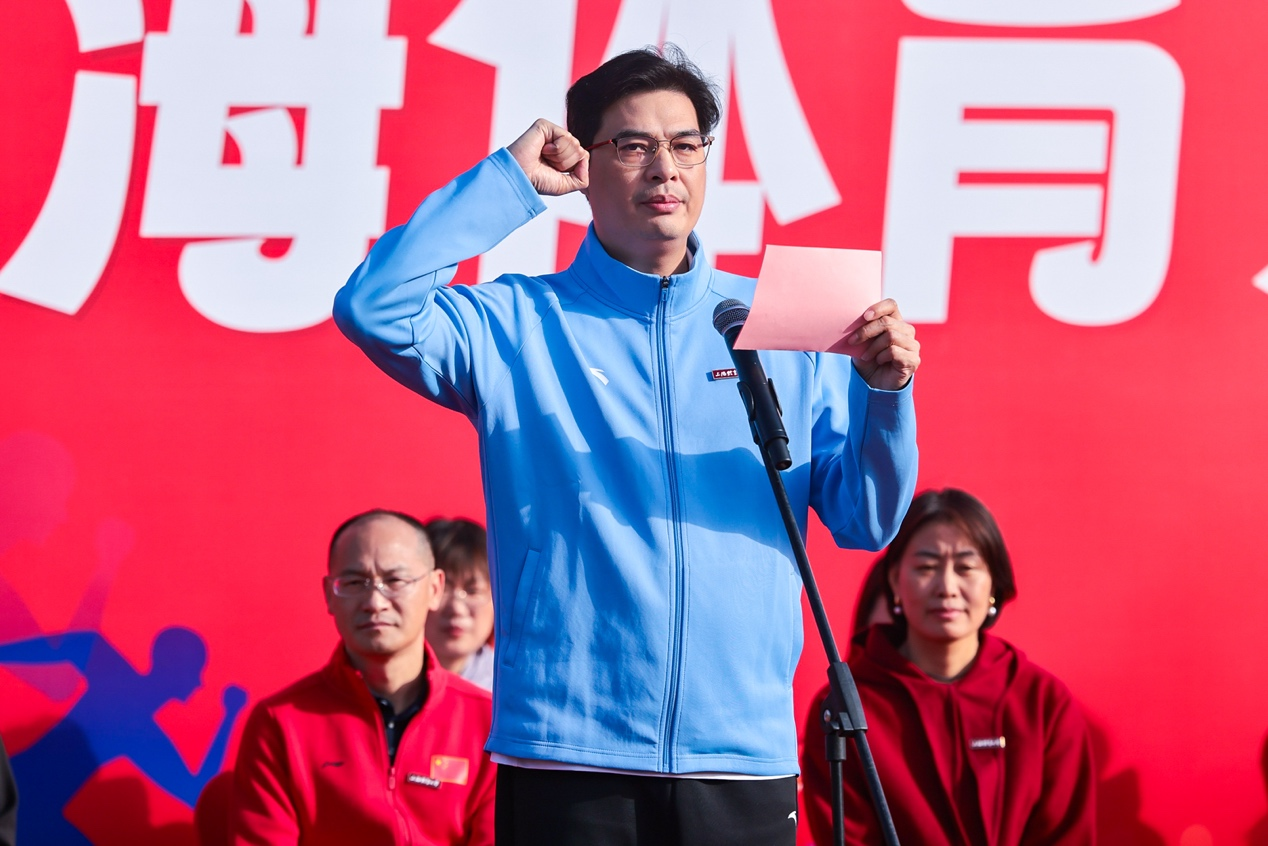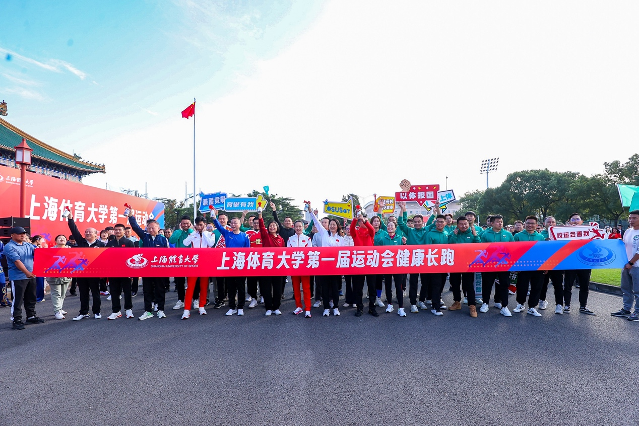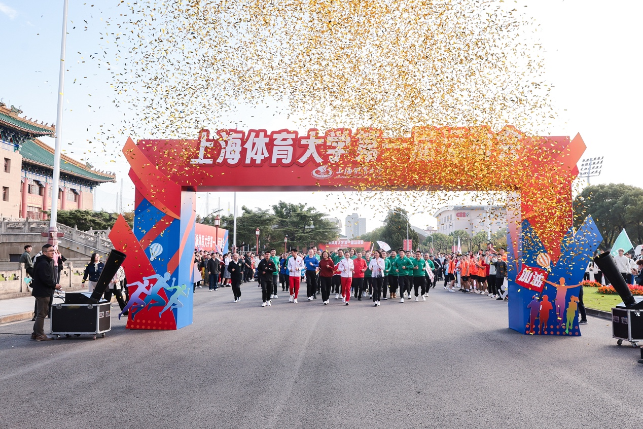 教学成果汇报展演后,校领导共同为健身长跑鸣枪发令,在伟德杭州亚运冠军江海东、陈冠锋、韦永丽的领跑下,教职工们迎着金雨开启了伟德源自英国始于1946第一届运动会的篇章。