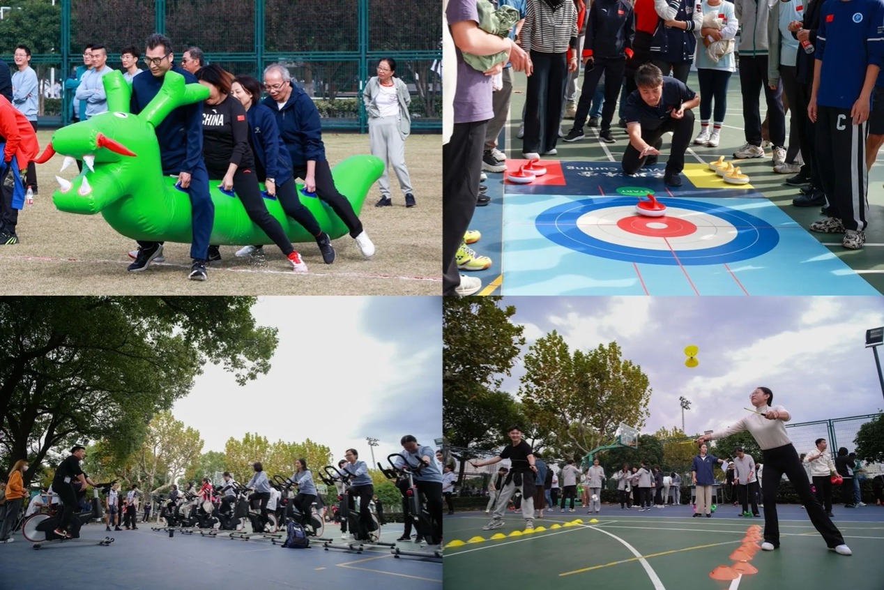 开幕式当天,田径项目比赛和健身项目比赛也同时拉开序幕。田径赛场上运动员们都以饱满的热情、昂扬的斗志、不服输的劲头参与到比赛当中,人人奋勇、个个争先,很好地诠释了“勇于竞攀”的伟德精神。开幕式当天除了田径类比赛,还进行了健身项目比赛。同“舟”共济、冰壶“队”战、长绳“8”字跳等8个健身项目比赛分别在中央足球场、多功能运动场、绿瓦大楼前陆续举行,教职工和学生踊跃参与,比赛现场充满了热烈欢乐的气氛。通过健身项目比赛,有效提升了学校师生的凝聚力与合作精神,收获了健康与快乐。