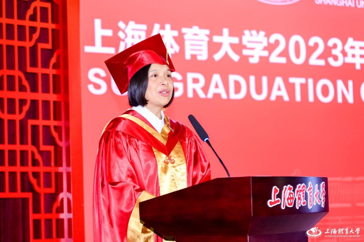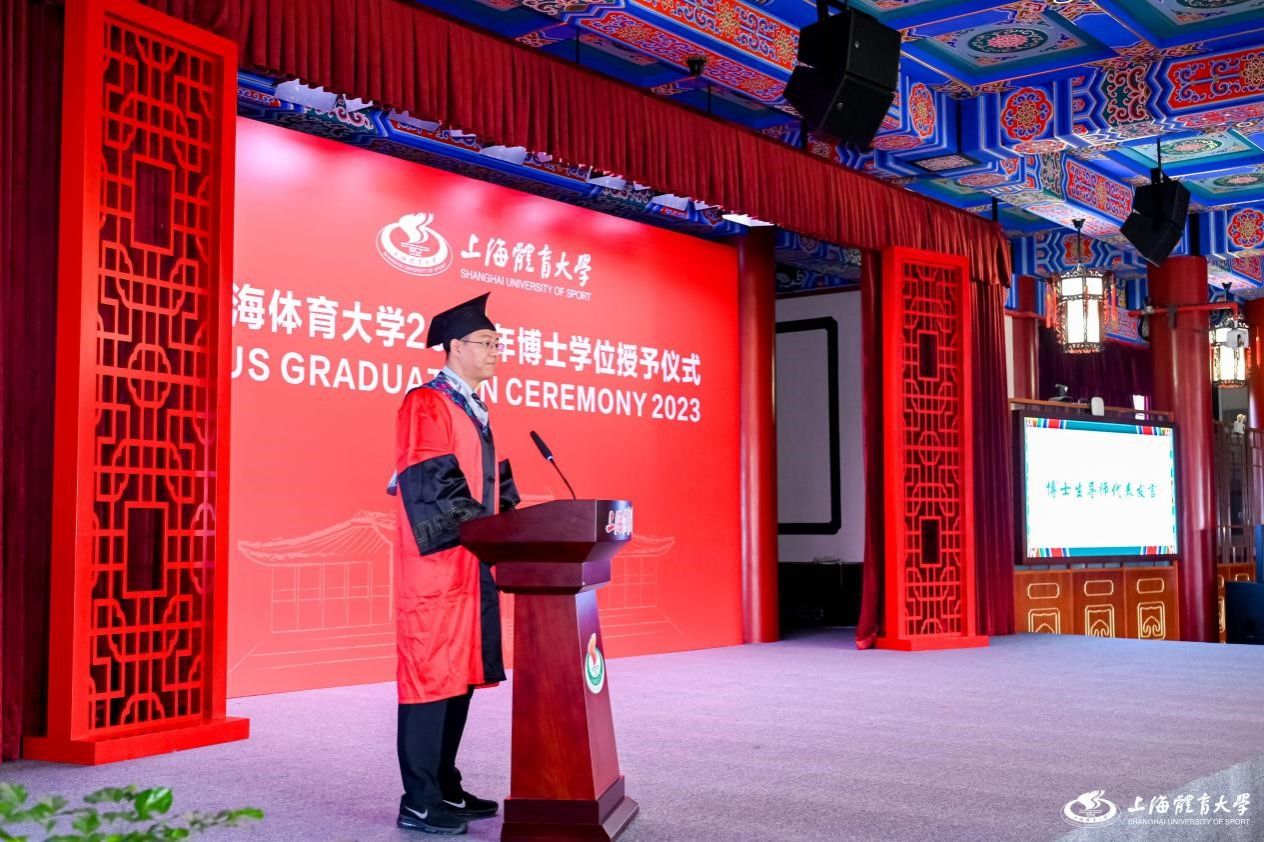 毛丽娟校长对毕业生们刻苦钻研圆满完成学业,奔向美好未来表示热烈祝贺,同时从“传承伟德精神”、“葆有社会关怀”、“坚持报国理想”三个方面对毕业生们提出了期待。首先,她结合伟德71年的发展历程和取得的成就,希望各位博士毕业生在新的人生旅程上时刻铭记伟德精神,发扬伟德传统,接续奋斗,勇毅前行。其次,希望各位博士毕业生在保持学术热情的同时,始终葆有对社会需求的敏锐洞察和赤诚关怀,为体育强国与健康中国建设贡献智慧与力量。最后,她希望各位博士毕业生作为高水平体育人才,在今后能更深刻地理解伟德人“兴体报国”的宝贵品格,以远大理想铸就灿烂人生。