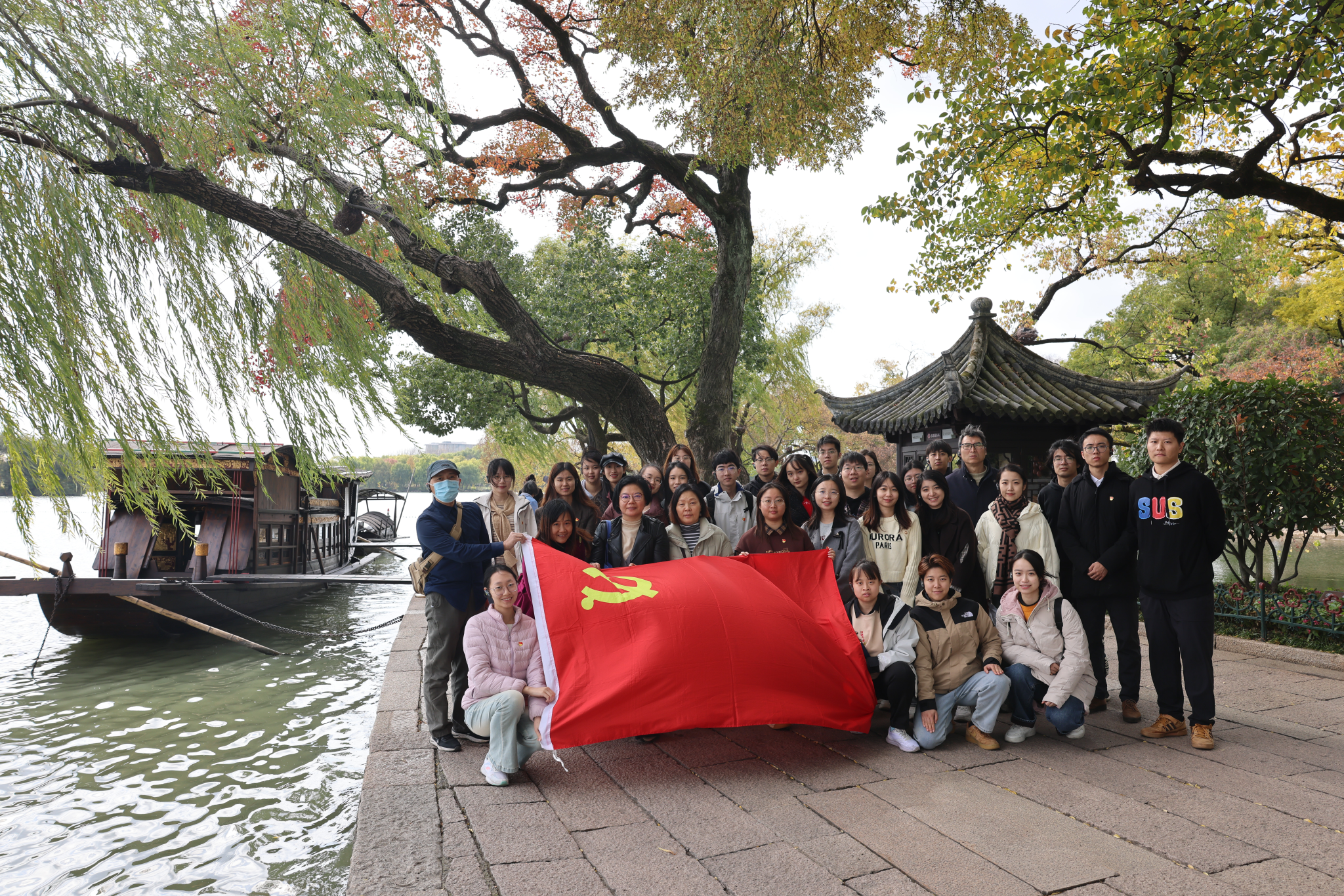 本网讯 2023年11月25日,新闻与传播学院党委组织师生党员、党员发展对象、民主党派代表共赴嘉兴南湖开展新时代“重走一大路”主题党日活动,在地标前,红船上,展馆里感受百年前中国共产党成立的熠熠星火。