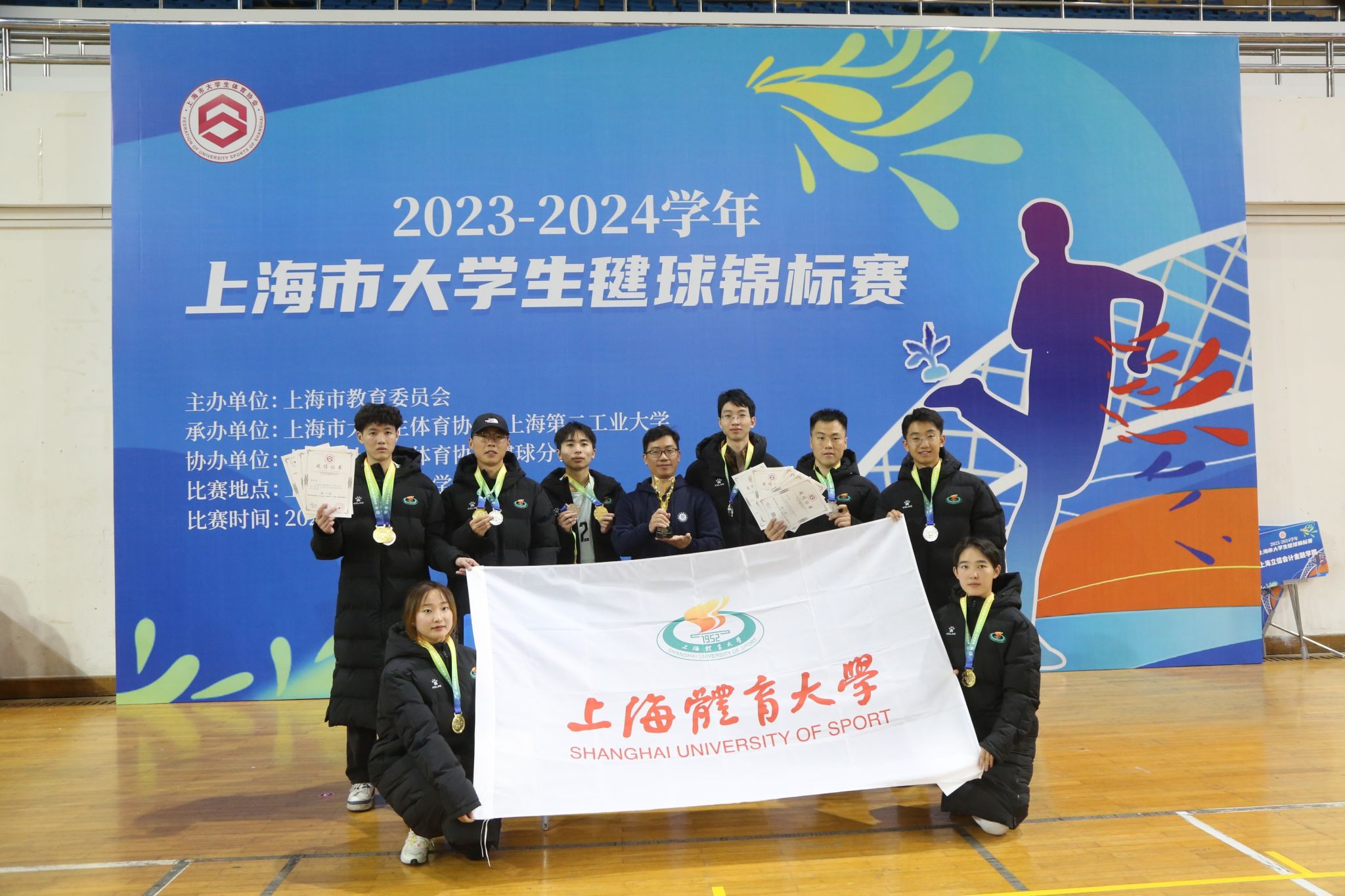 本网讯 12月2日-12月3日,2023-2024学年上海市大学生毽球锦标赛在上海第二工业大学举办。本次赛事共有本市的12支高校队伍共计137人报名参赛。伟德毽球队由体育教育学院党委书记王红英担任领队,韩耀刚老师任教练,8名运动员参加比赛,历经多番鏖战,斩获2金1银,创下伟德毽球比赛历史最好成绩。