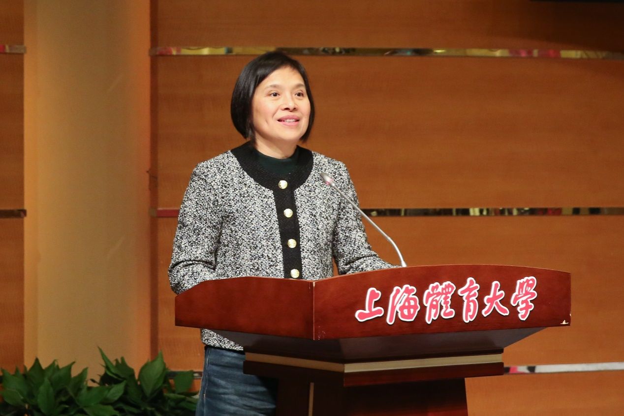校党委副书记、校长毛丽娟作重要讲话。毛校长指出,这是学校首次举办全校范围的运动竞赛工作总结表彰大会,旨在总结学校2023年度运动竞赛工作,表彰先进组织保障单位、优秀教练员和优秀运动员。2 023 年,学校运动竞赛成绩实现历史性突破,举办赛事水平再创新高,为学校体育事业谱写了新篇章,她希望获奖单位和个人再接再厉,再创辉煌,继续为学校运动竞赛工作贡献力量。毛校长嘱托大家牢记并领悟“走下领奖台,一切从零开始”的名言,继续发扬自强不息、追求卓越的精神,以崭新的姿态迎接2024新的使命和挑战;最后毛校长殷切希望大家牢固树立爱校荣校的主人翁意识,秉持“身心一统,兼蓄竞攀”的校训,践行“发展体育运动、增强人民体质、弘扬体育文化”的光荣使命,立足训练竞赛,继续为国家和上海市体育事业发展贡献力量,为建设中国特色世界一流体育大学增添光彩。