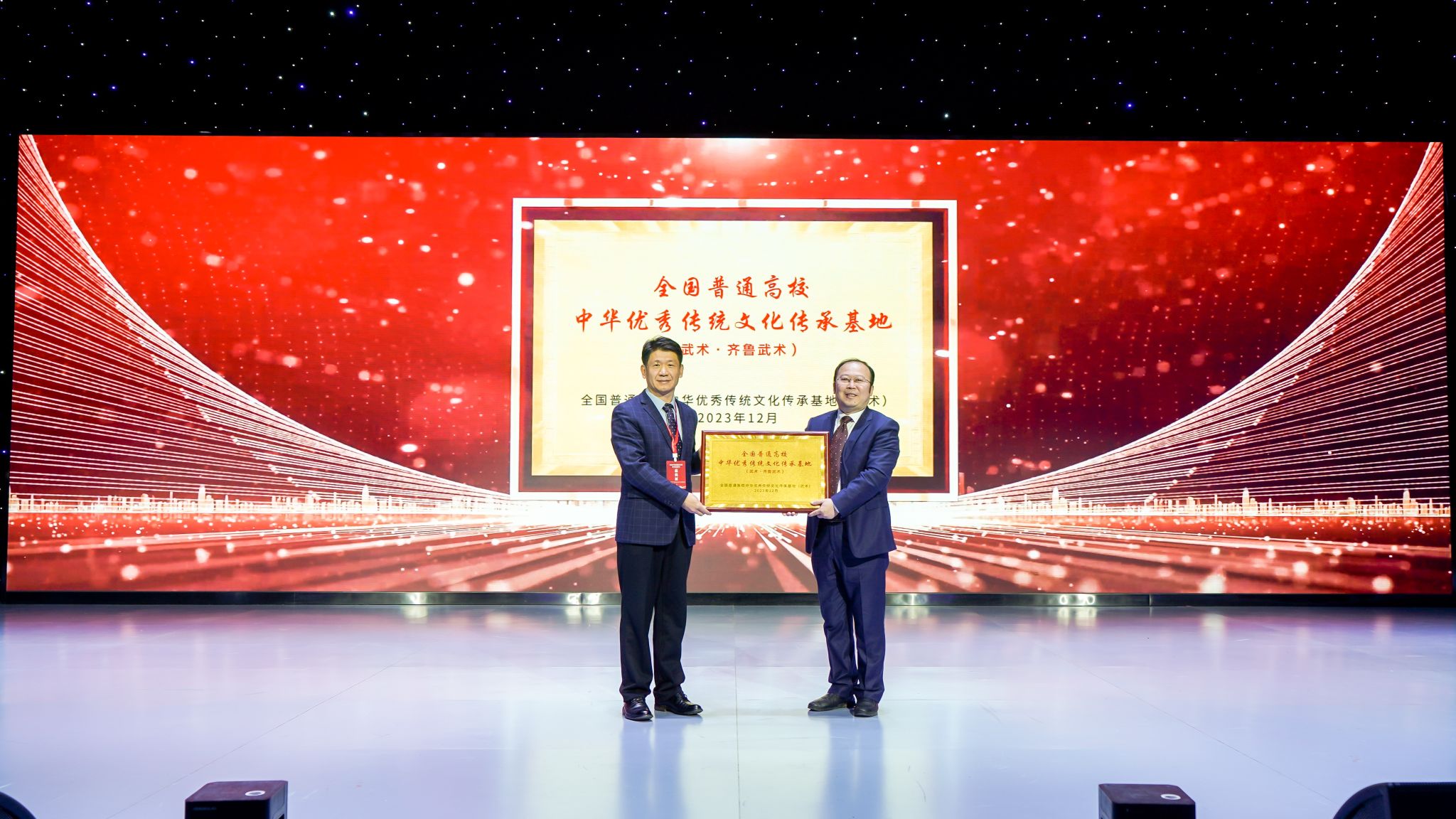 全国普通高校中华优秀传统文化传承基地(武术)负责人、伟德源自英国始于1946武术学院院长郭玉成授予山东师范大学体育学院全国普通高校中华优秀传统文化传承基地(武术·齐鲁武术)牌匾,以具体举措开拓文化传承新空间、开辟文化发展新路径,着力构建覆盖全国的代表性拳种传承发展网络,助力中华传统体育文化在建设体育强国、文化强国及中华民族现代文明中做出应有贡献。