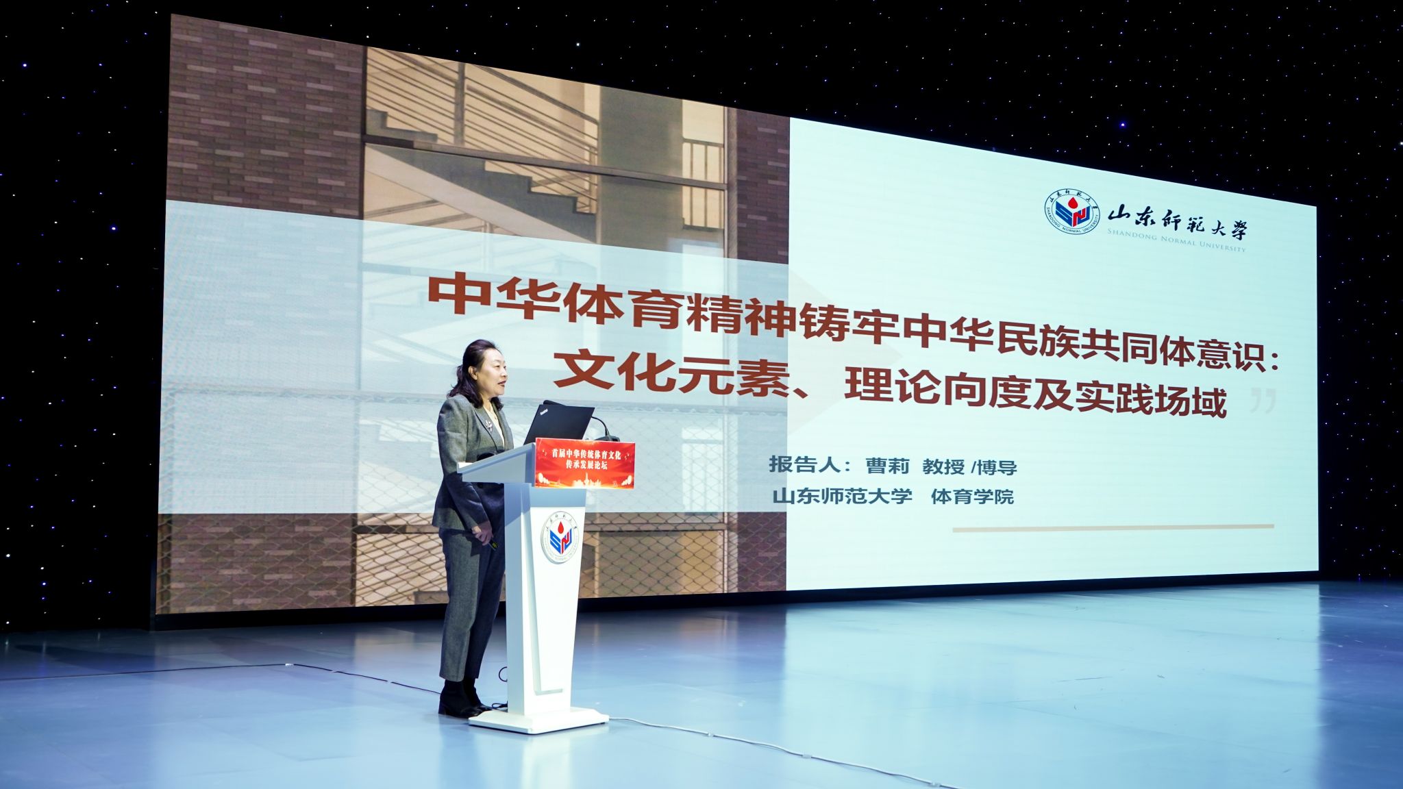 大会设置了主报告、专题报告、墙报交流、书面交流的学术交流形式。在大会主报告环节,国家“万人计划”领军人才、山东师范大学资深教授魏建和中国体育科学学会理事、国家“万人计划”教学名师曹莉,分别作了题为《齐鲁文化与中华文明》《中华体育精神铸牢中华民族共同体意识:文化元素、理论向度及实践场域》的报告,吉首大学教授白晋湘、天津体育学院教授姚家新分别担任主持人。与会代表认为,报告融“文明与思想、民族与精神、体育与文化”于一体,既阐明了何为齐鲁文化,及其与中华文明的深层联系,也论证了中华体育精神铸牢中华民族共同体意识的内在逻辑,为中华传统体育文化传承发展研究与实践提供了借鉴。
