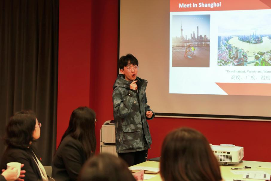 会上还设置了“青年说”的展示环节。2020级本科生彭光钰以“Meet in Shanghai”为题呈现了一堂英文微党课,呼应了“Bund in Red”的行走主题,受到了一致好评。