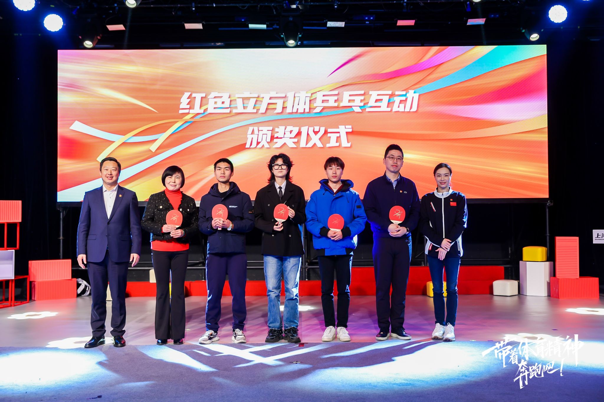 去年12月,体育荣光照进著名体育城市——上海体育宣讲团“红色立方体”在伟德进行了为期一周的展陈。在“红色立方体进校园乒乓球互动活动”中,伟德站冠军获得者李俊硕同学,在活动现场获得许昕签名球拍,奥运冠军、上海体育宣讲团志愿服务队形象大使吴敏霞为其颁发。
