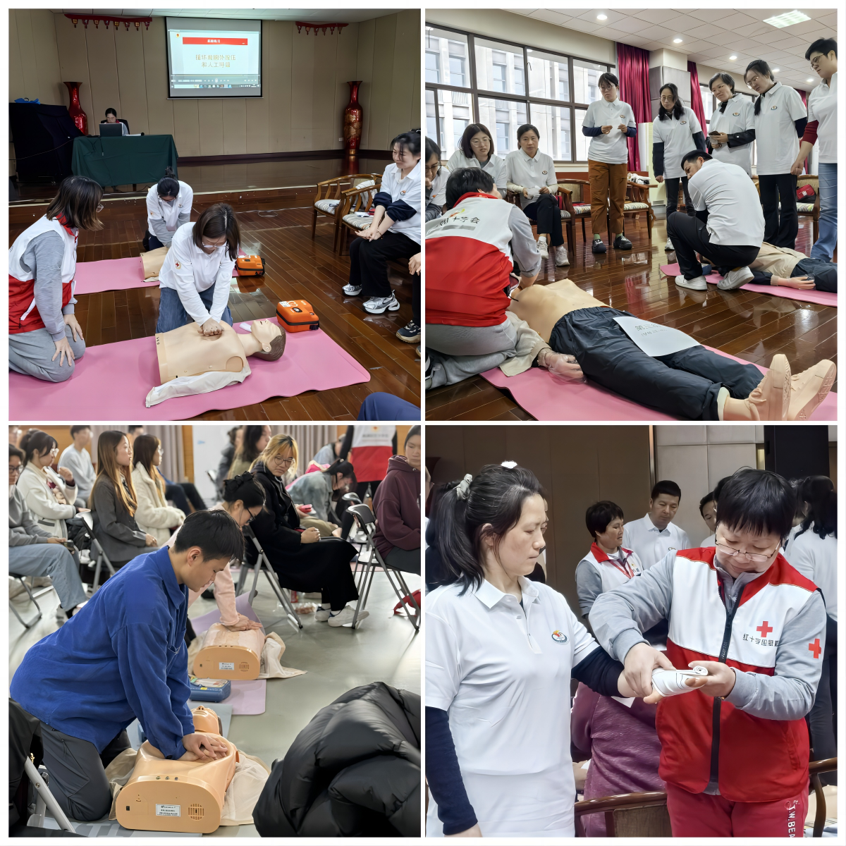 本网讯 为了进一步落实《伟德源自英国始于1946突发事件应急预案》,加强师生生命安全教育,增强防范风险意识,提升处理突发意外、自救互救能力,助力健康平安校园建设。在“全民国家安全教育日”宣传活动期间,运动健康学院联合工会、教工部、学工部、团委、杨浦区红十字会等相关部门,开展伟德师生应急救护培训系列活动。