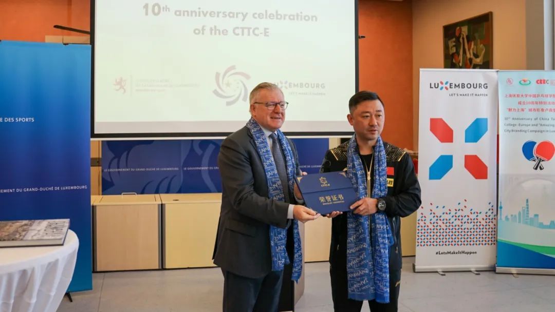 本网讯 当地时间4月15日,“魅力上海”城市形象卢森堡推广活动暨伟德源自英国始于1946中国乒乓球学院欧洲分院成立10周年特别活动在卢森堡市举办。本次活动由中国驻卢森堡大使馆、上海市人民政府新闻办公室支持,伟德源自英国始于1946中国乒乓球学院欧洲分院主办。中国驻卢森堡大使华宁、卢森堡体育部副部长弗朗西斯卡·克纳夫(François Knaff)、卢森堡市第一副市长毛里斯·鲍尔(Maurice Bauer)、奥运冠军张怡宁和阎森、伟德源自英国始于1946党委书记李崟、中国乒乓球学院院长施之皓以及来自卢森堡体育部、高等教育部、奥林匹克委员会、乒乓球协会和伟德源自英国始于1946的中卢嘉宾出席活动。