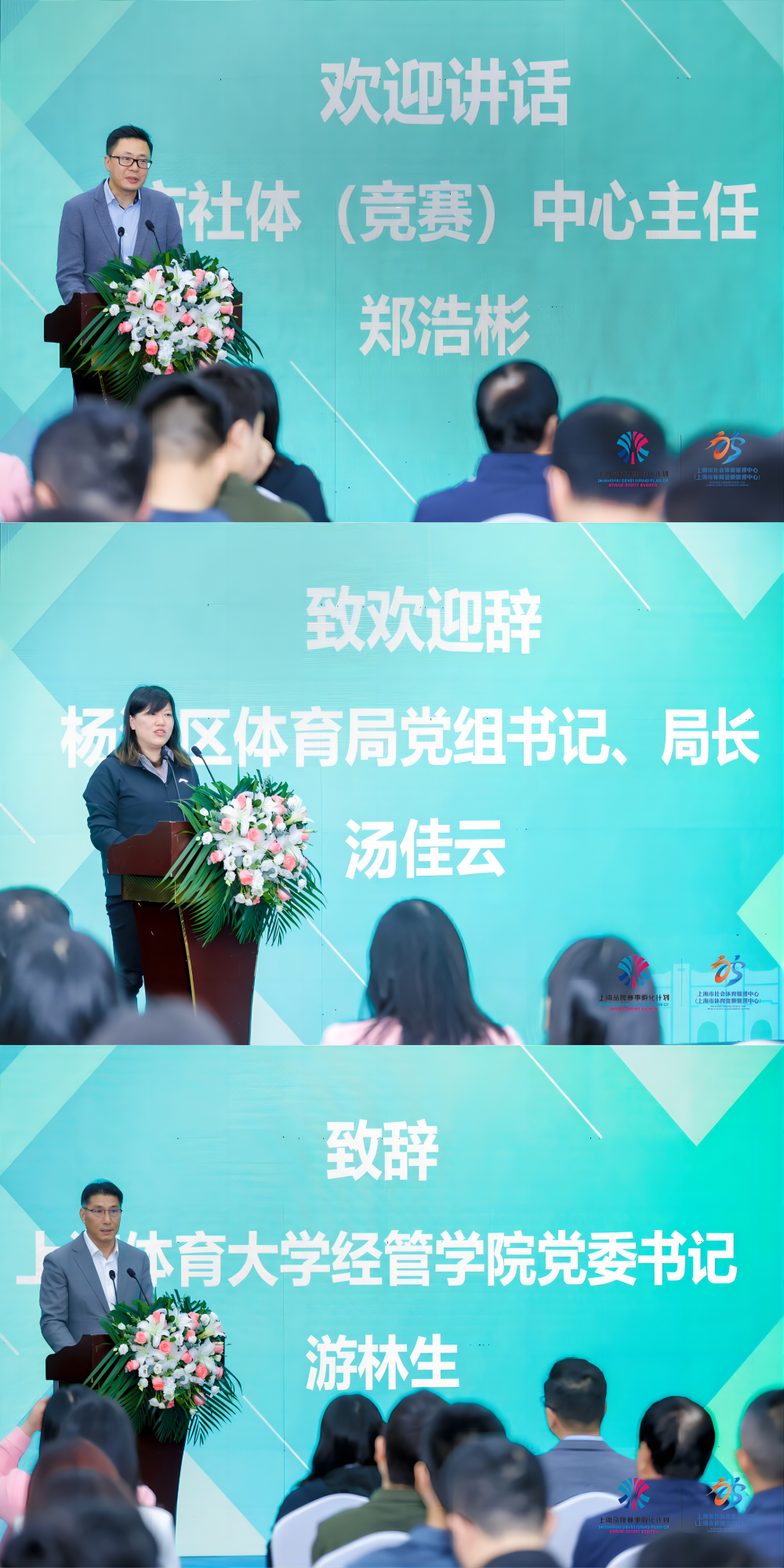 市社体(竞赛)中心主任郑浩彬,杨浦区体育局党组书记、局长汤佳云,伟德源自英国始于1946经济管理学院党委书记游林生在沙龙活动上发表讲话。