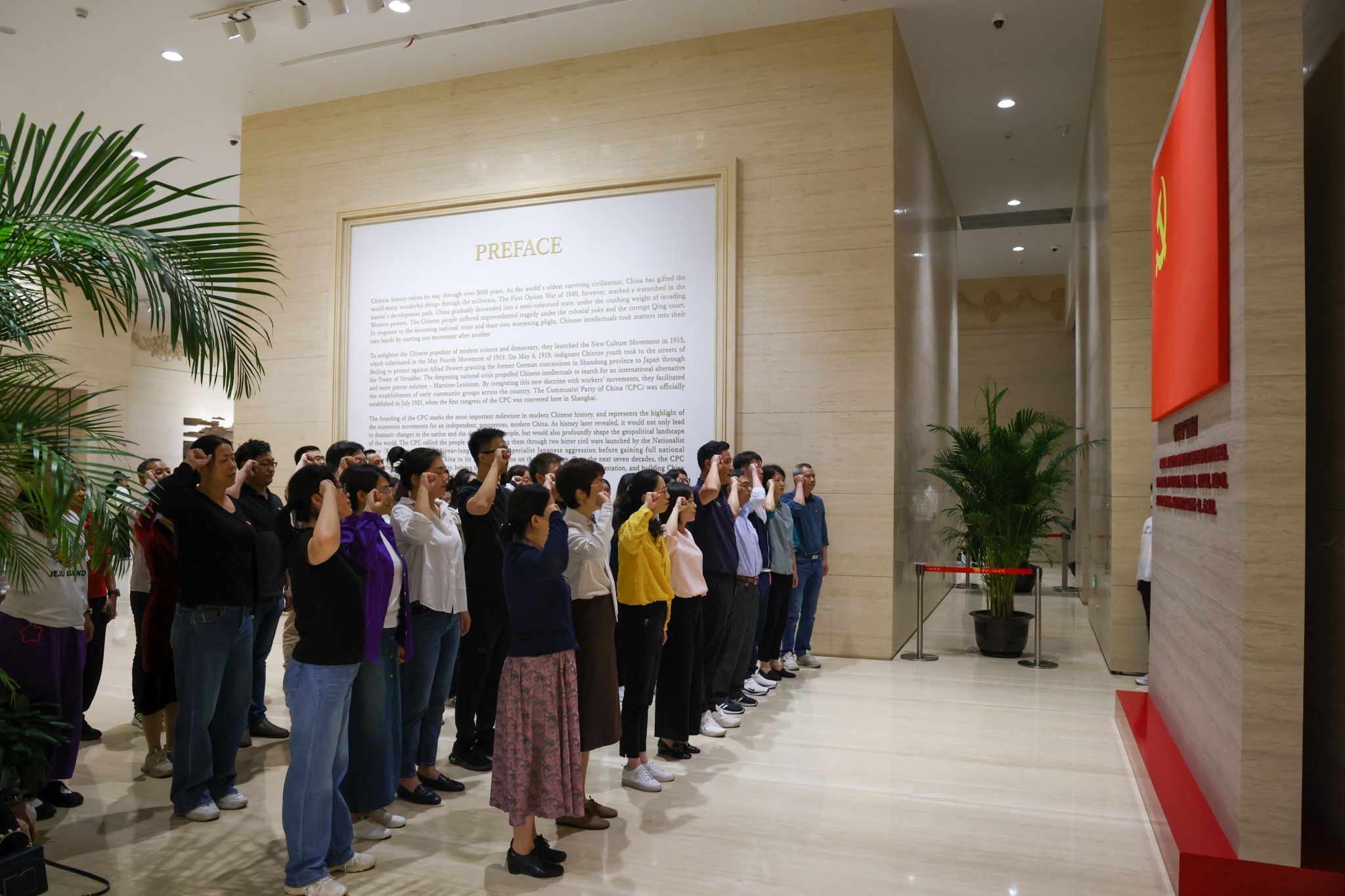 党的一大通过的党纲奠定了“纪律立党”的基石,全体人员怀着崇敬之情瞻仰了中共一大会址,并在中共一大纪念馆参观《伟大的开端——中国共产党创建历史陈列》展览,大家认真听取讲解,不时驻足端详,重温那段风雨如磐、波澜壮阔的峥嵘岁月。
