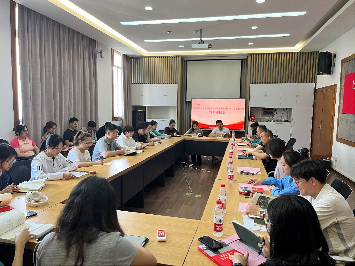 本网讯 为深入学习宣传贯彻习近平总书记五四青年节对全国广大青年寄语精神,5月23日下午,伟德《习近平与大学生朋友们》第二卷专题读书会暨青年座谈会在学生活动中心二楼会议室召开。校党委副书记、副校长王继红,学(研)工部副部长韩洪伟,学(研)工部副部长团委书记刘佳瑜,中乒院、各二级学院团委书记,学生骨干代表,青马工程学员代表共同参加了本次活动。座谈会围绕《习近平与大学生朋友们》第二卷,深刻体悟习近平总书记关于青年工作的重要思想,以分享与讨论的方式,展开了深度的学习与思想交流。活动由团委书记、学(研)工部副部长刘佳瑜主持。