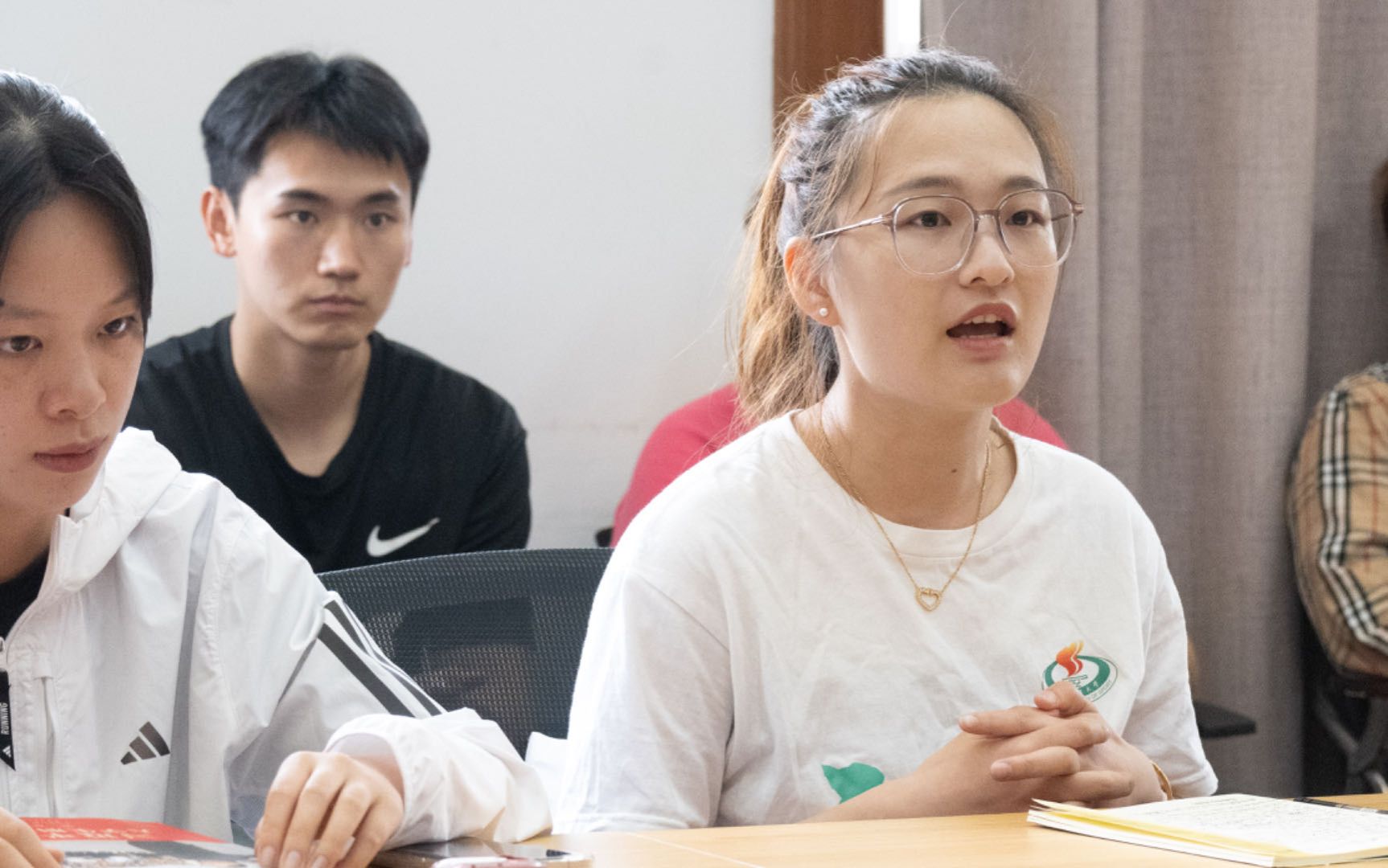 活动中,2023年度上海市五四青年奖章集体获得单位、中国乒乓球学院青年志愿服务队成员杨思嫚同学,连续十年以寒暑假社会实践为契机长期在我国少数民族聚居区、临边城市和地区开展社会实践的体教学院民族大团结组合青年团队成员覃彦同学,上海市青马工程学员、校学生会执行主席、奥运资格赛·上海长期志愿者林锦轩同学,2023年全国大中专学生“三下乡”社会实践活动“笃行计划”专项行动优秀实践个人、上海市暑期社会实践优秀个人、心理学院硕士生丁黎亚同学以及之前长期参与科技攻关服务国家运动队工作的竞技运动学院博士路恒老师先后结合自身实际和学习心得体会进行了交流分享。他们纷纷表示,将始终牢记习近平总书记对青年大学生的谆谆教诲和殷切期望,树立远大理想,敢于奋勇搏击,乐于“自找苦吃”,将青春汗水洒向祖国的广阔天地,让青春之花在祖国最需要的地方绽放,为实现中华民族伟大复兴的中国梦汇聚磅礴的青春力量。
