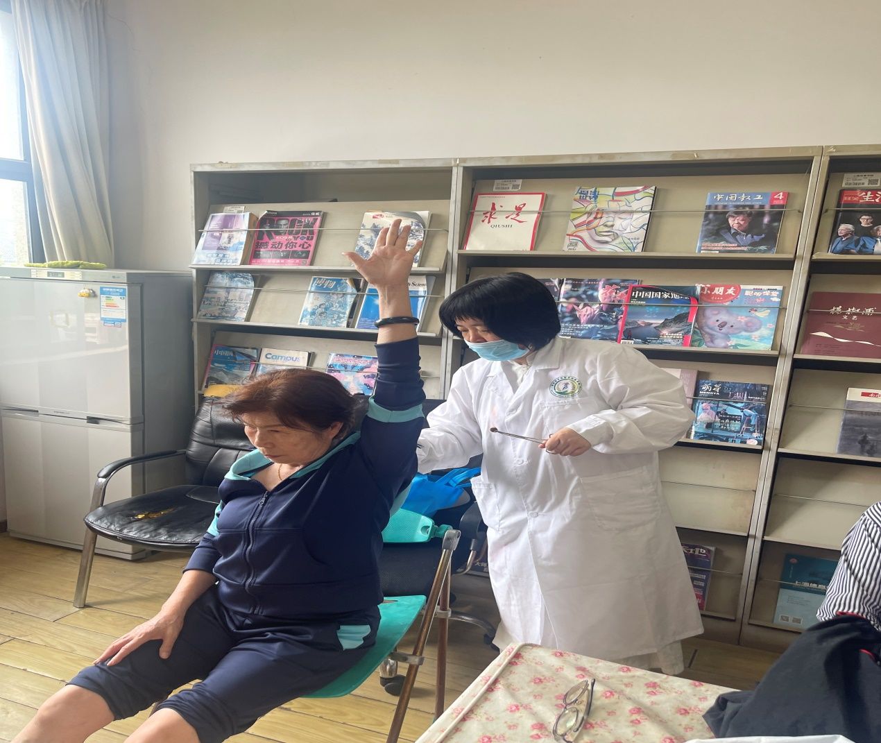 由伟德伤骨科医院康复科胡浩宇主任领衔的康复医疗团队,为老同志带来专业的义诊服务。朱强医生结合自己多年行医的临床案例,他从什么是关节炎、什么是膝骨性关节炎、中华医学会对膝骨诊断指南标准、KOA的运动康复等,进行深入浅出边讲解。同时,王瑞泽康复师在台上实操,与台下的老同志互动交流。有的老同志根据自己的情况还不时提问,有的被请到台上现场按摩并指导回家如何锻炼,台上台下互动,很是融洽。团队的中医针灸徐金巧医生的台前,有许多老同志排队候诊。有几个腰、腿、肩颈等病的人,经徐医生用燃烧的酒精棉,烧红金针,熟练、精准地扎进穴位。有几位腰酸背痛,手臂抬不起来的,经她用火烧的金针,迅速地扎了几个穴位,顿时感觉腰背不痛了,手臂马上抬起来了,当场见效,大家啧啧称奇连声叫好!