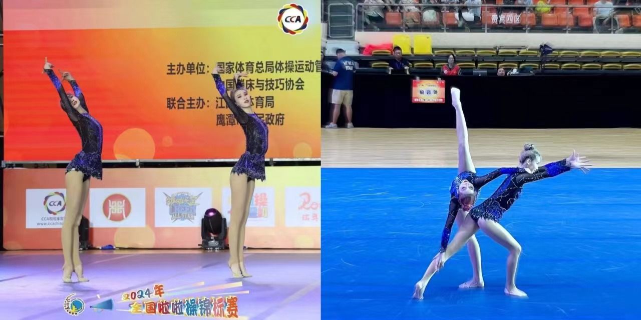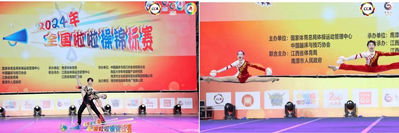 本网讯 2024年6月1日至5日,全国啦啦操锦标赛在江西鹰潭隆重举办。此次比赛由国家体育总局体操运动管理中心、中国蹦床与技巧协会主办,比赛项目丰富多样,为观众呈现了一场视觉盛宴。共有来自全国各地的156支啦啦操队伍共2871人参与赛事。观赏性极强,专业度极高。此次比赛本校共有两个队伍参与。分别由艺术学院副院长(主持工作)韩春英带领的绿瓦啦啦队以及体育教育学院教师陆颖娜带领的竞攀啦啦队,两队共参加7项比赛项目,勇夺三金三铜一第四的好成绩!