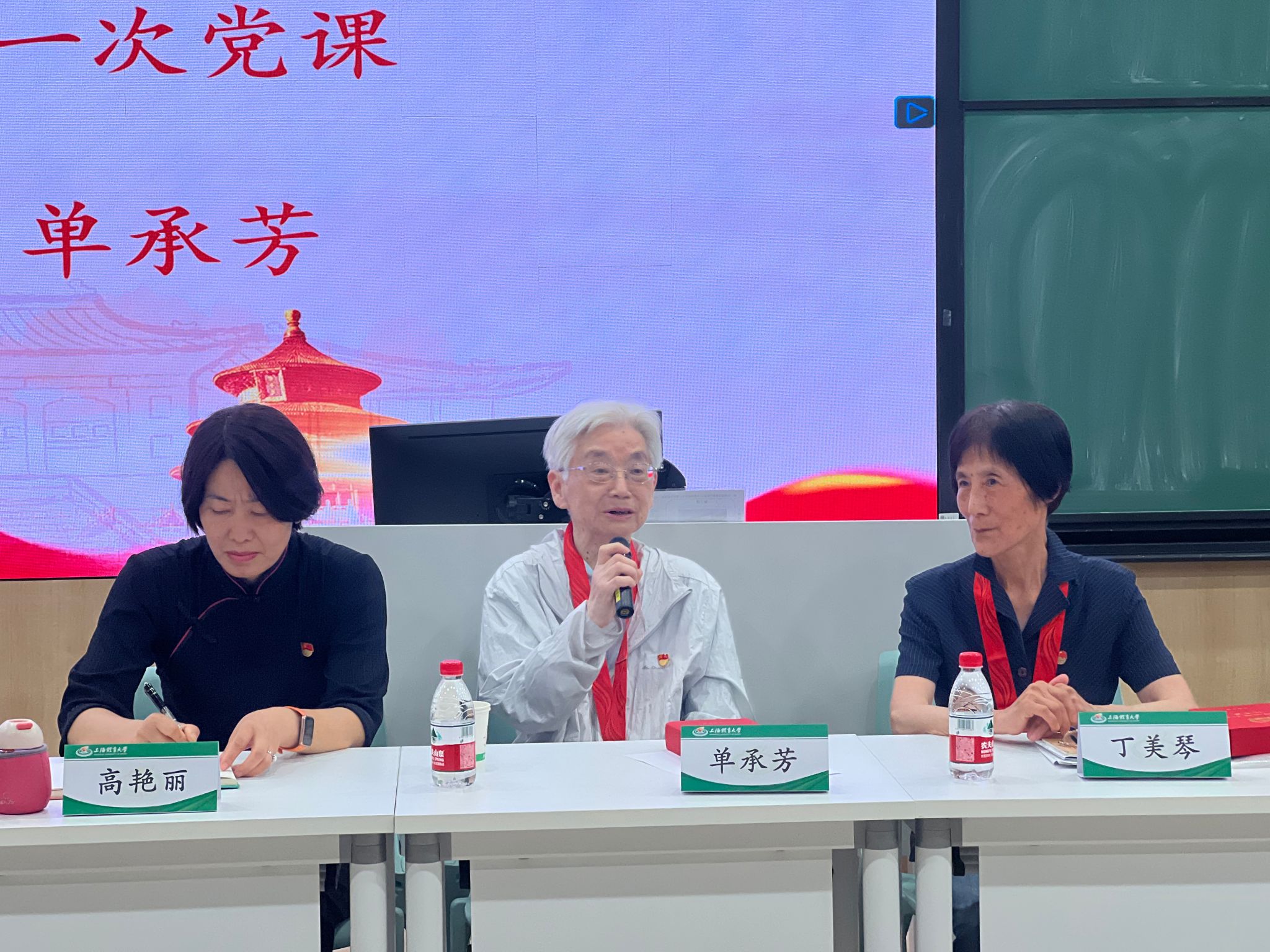 在新闻与传播学院毕业生党员主题教育环节,丁美琴和单承芳同志给毕业生带来了精彩的党课。