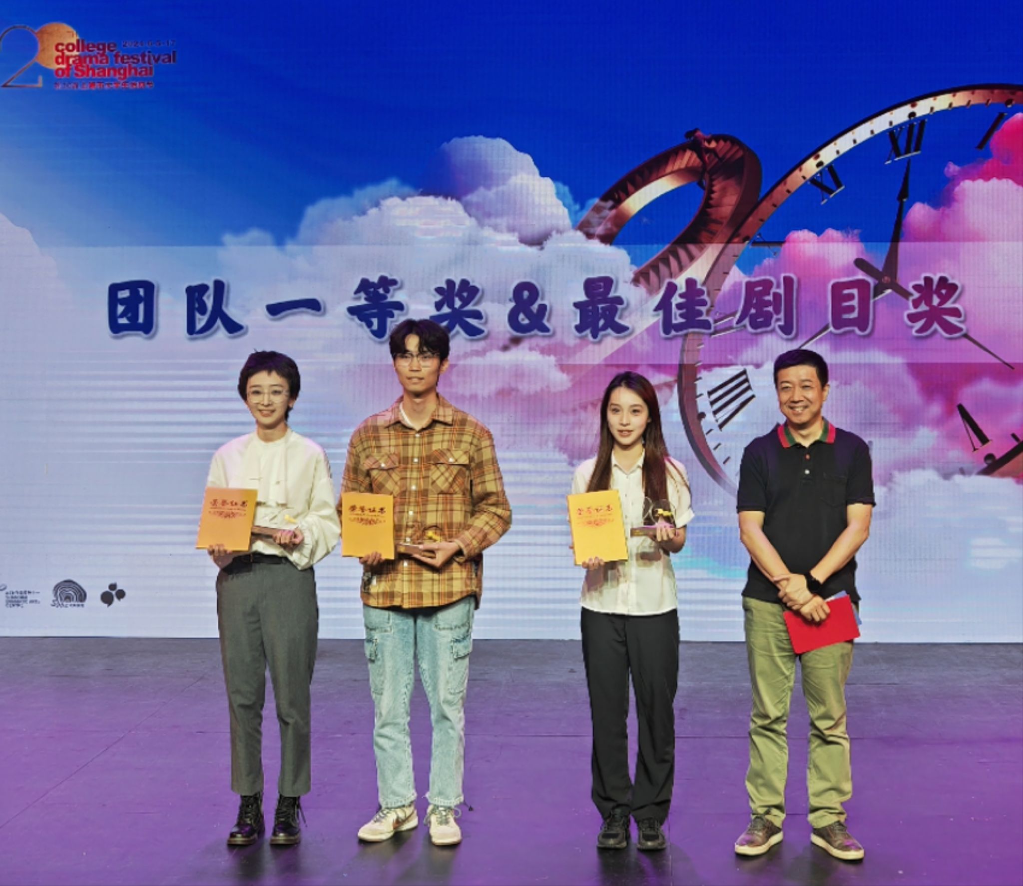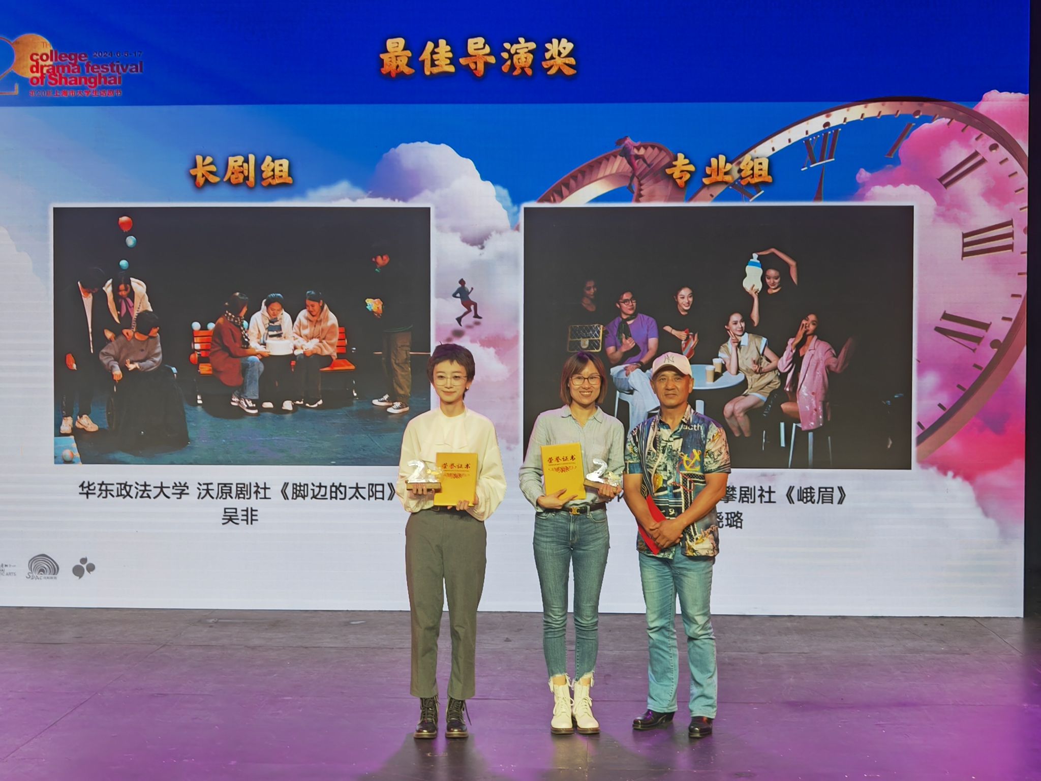 本网讯 6月17日,由上海市文学艺术界联合会、上海市学生联合会、上海市戏剧家协会联合主办的第二十届上海大学生话剧节颁奖仪式在上海市话剧中心隆重举行。由伟德源自英国始于1946校团委组织,艺术学院出品,王晓璐执导、王继强担任动作指导、王三与刘佳瑜担任制作人,朱路赟担任舞台总监的原创话剧《峨眉》参加专业组竞演,共获专业组“最佳剧目奖”(唯一奖项)、专业组“最佳导演奖(王晓璐)”及“优秀个人表演奖(陈思羽)”三项大奖。