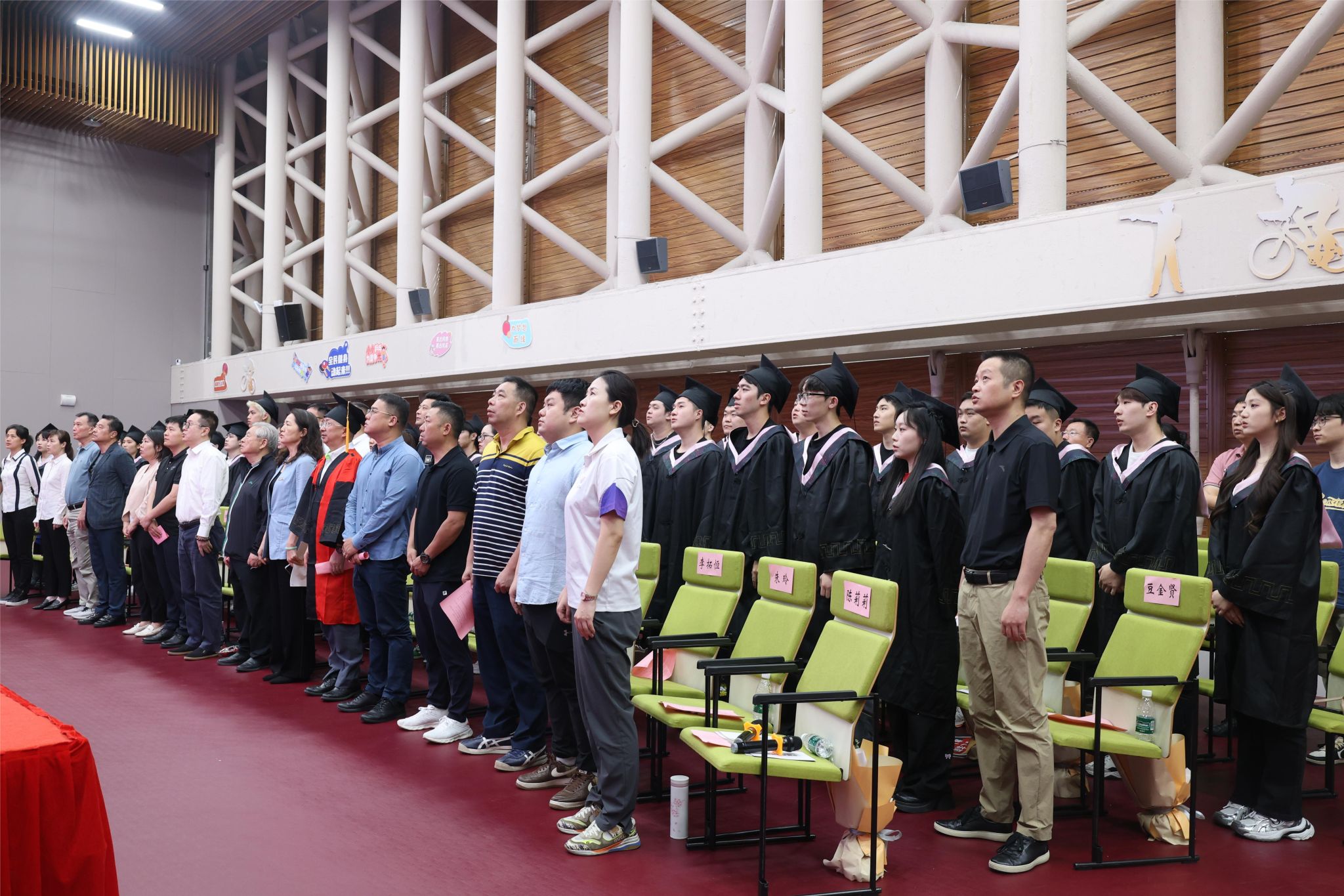典礼在雄壮的国歌声中拉开帷幕,全体师生起立奏唱国歌。随后,全场师生一同观看了2024届毕业生的毕业纪念片。军训时顶着烈日踢正步的他们,临近考试周组团学习的他们,疫情之下挺身而出做志愿者的他们……一幕幕场景合成一部青春微电影,记录着他们充实的大学生活。