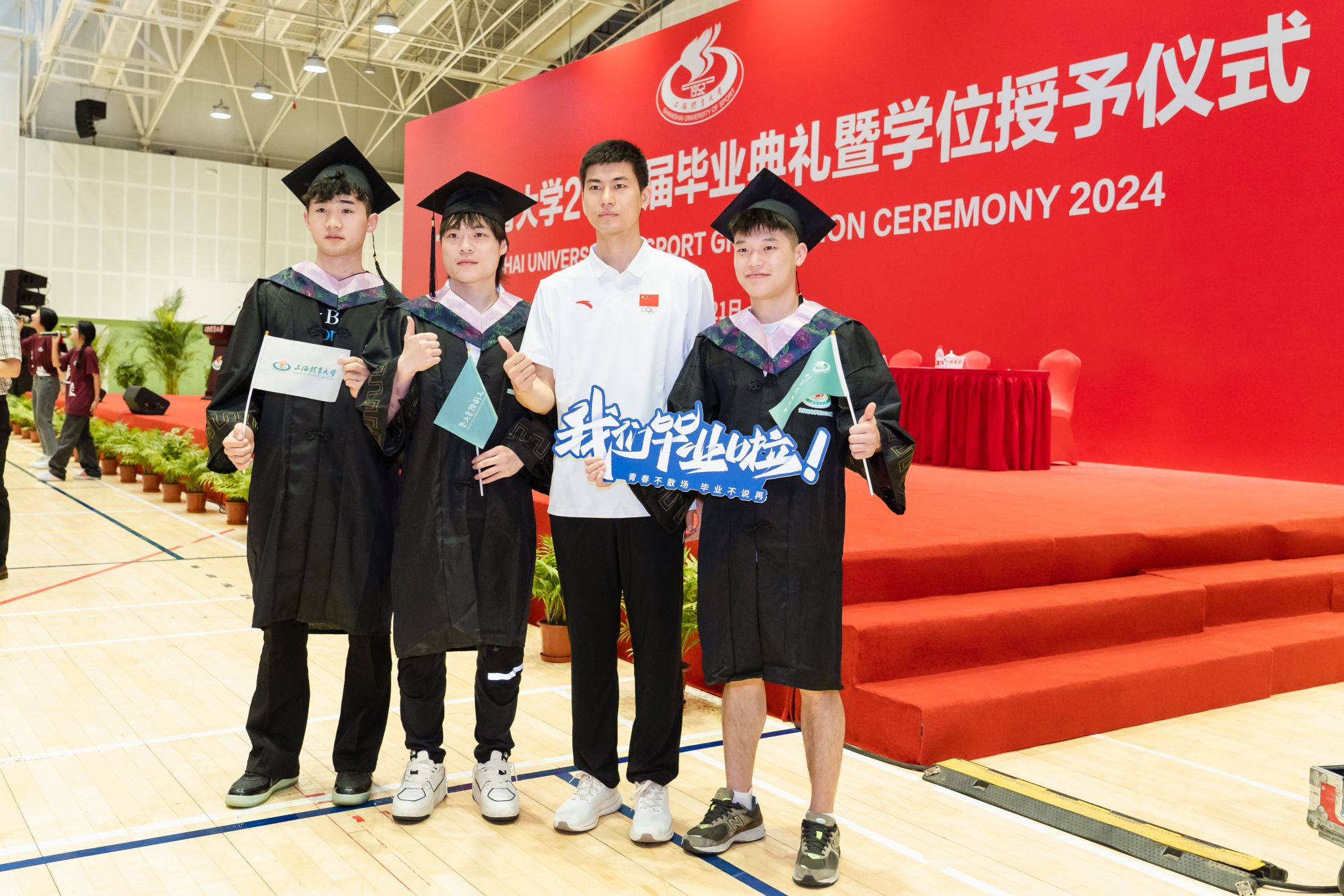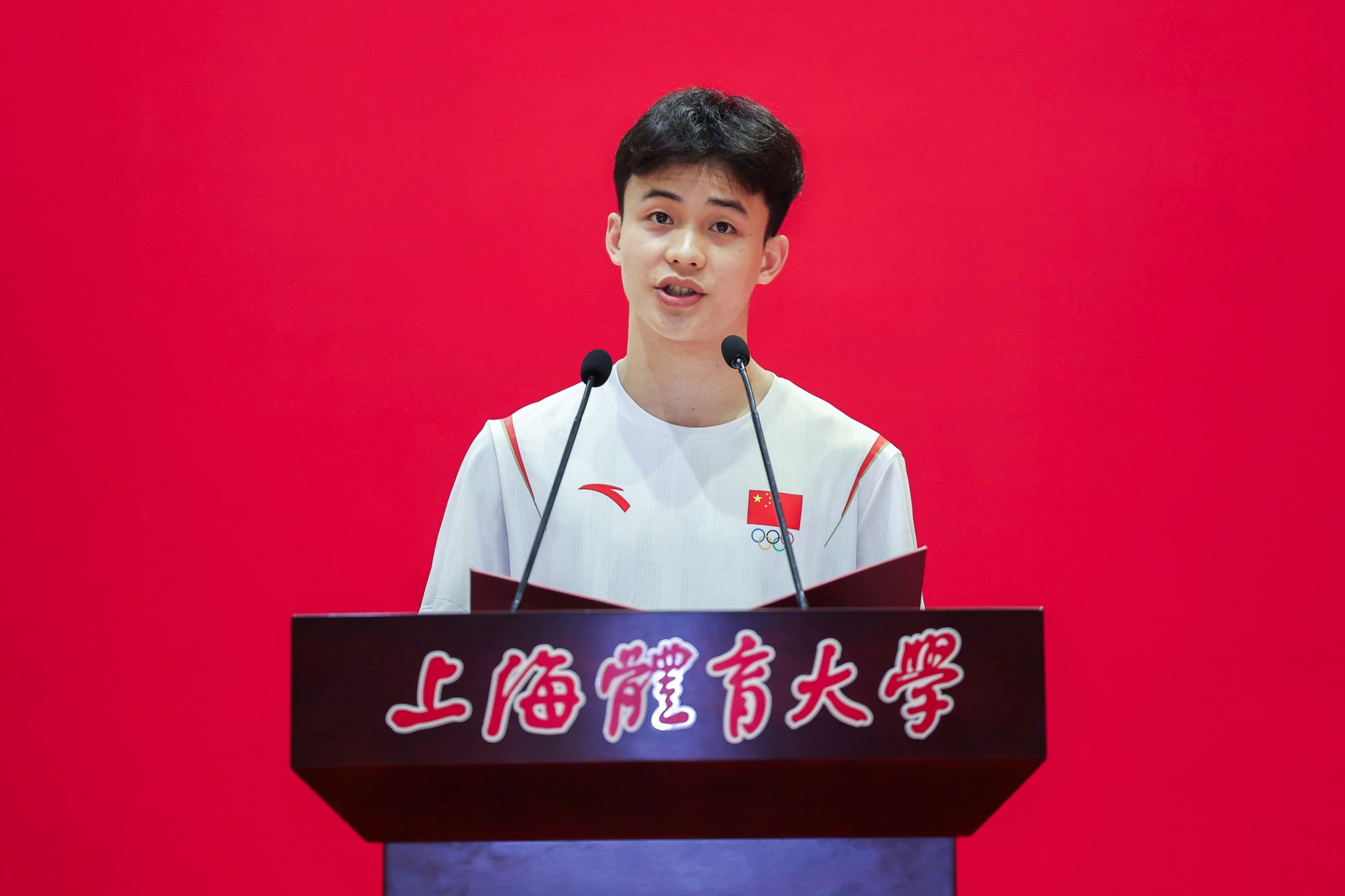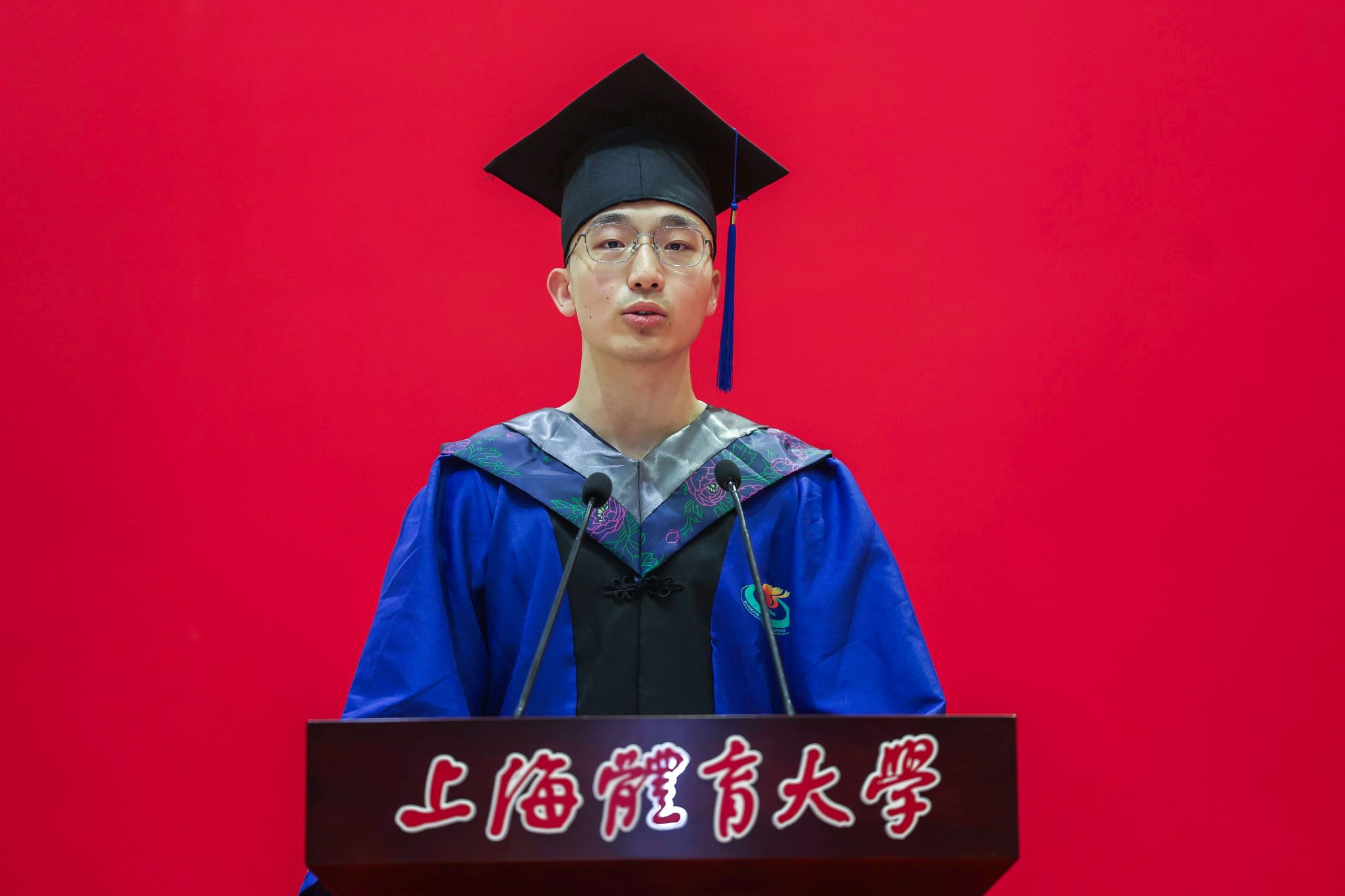 竞技运动学院本科毕业生严思宇和运动健康学院硕士毕业生罗烨进行了交流发言,他们重温了自己成长道路上的点滴时光,感恩老师和同学们的无私帮助与付出。两位同学的发言中,均谈到了“竞攀”精神在他们成长道路上的重要作用,他们将铭记校训,用实际行动,为社会作出更多的贡献。