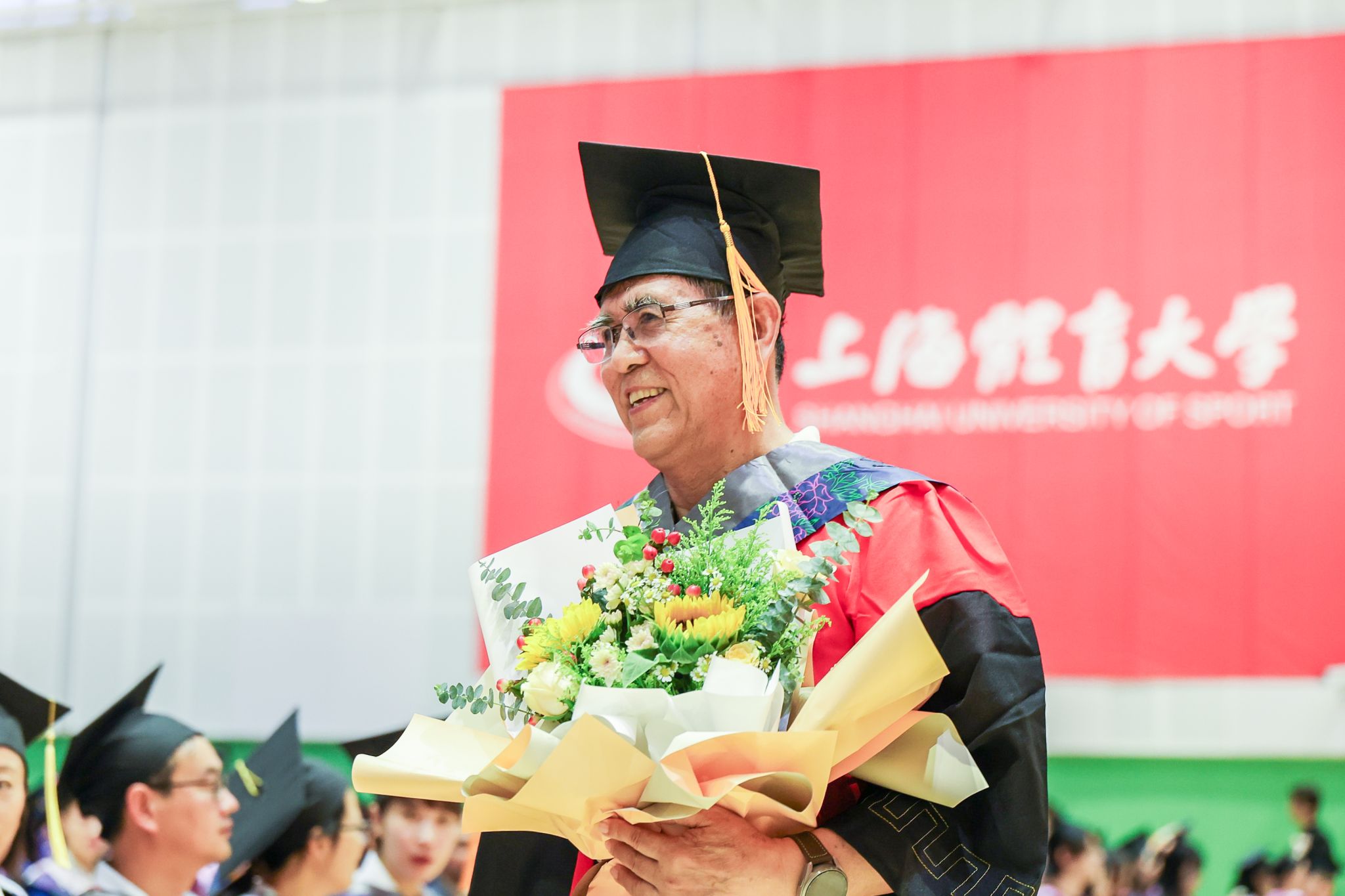 中国武术九段、武术学院博士生导师邱丕相教授进行了发言。他深情地回顾了在学校度过的六十余载光辉岁月,从教书育人到管理育人,他坚守与奉献,用心血和汗水,与伟德人共筑教育梦想。邱丕相教授表达了对学生的期许,“位卑未敢忘忧国”,希望全体毕业生报恩父母,更要深情于祖国和人民,他书写了一副“诗书非药能医愚,道德无根可树人”的对联赠送给学校和学生们。