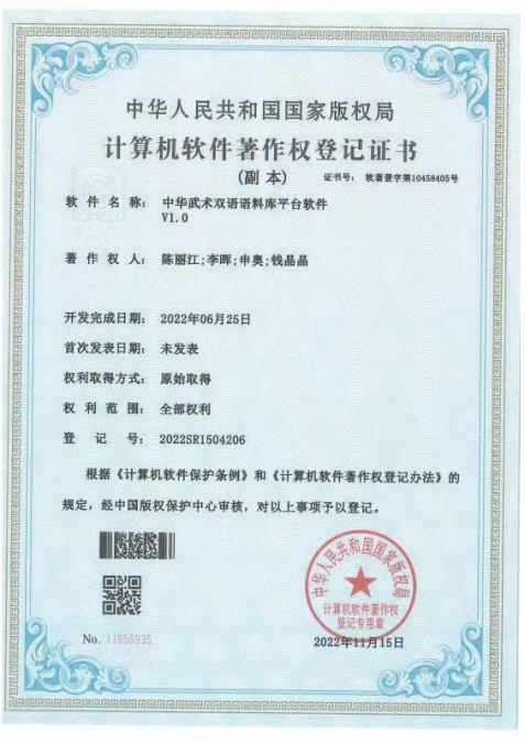 2024年教育部产学合作协同育人中华武术双语语料库平台软件V1.0