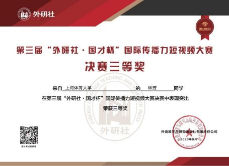 林芳获第三届“外研社·国才杯” 国际传播力短视频大赛三等奖