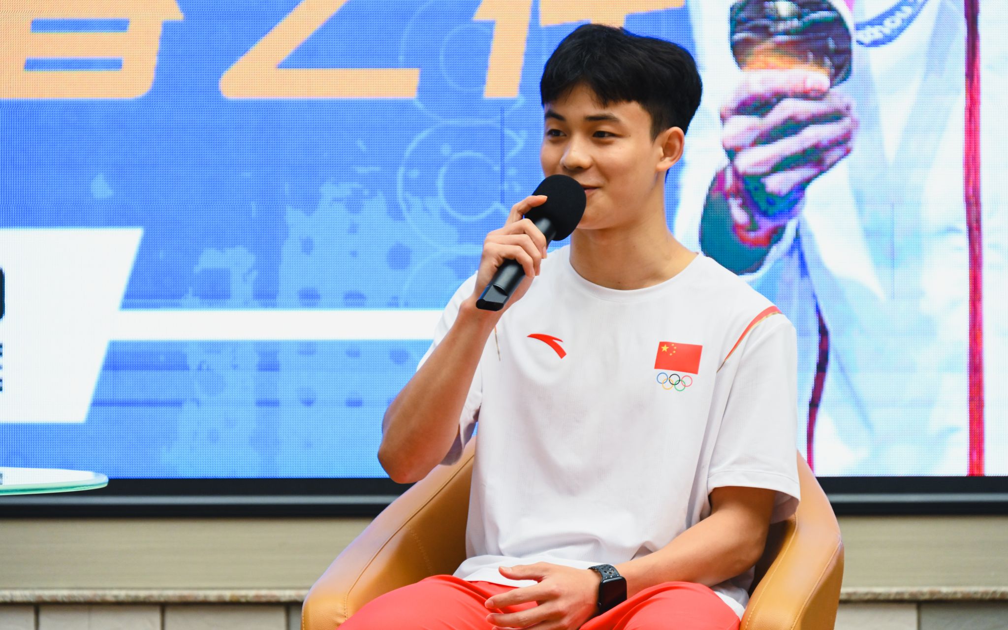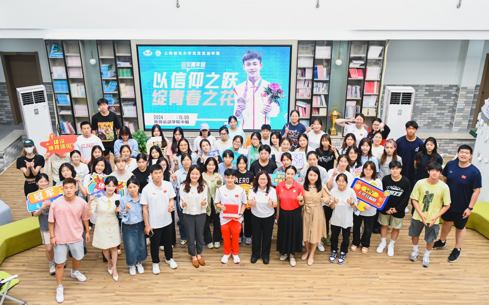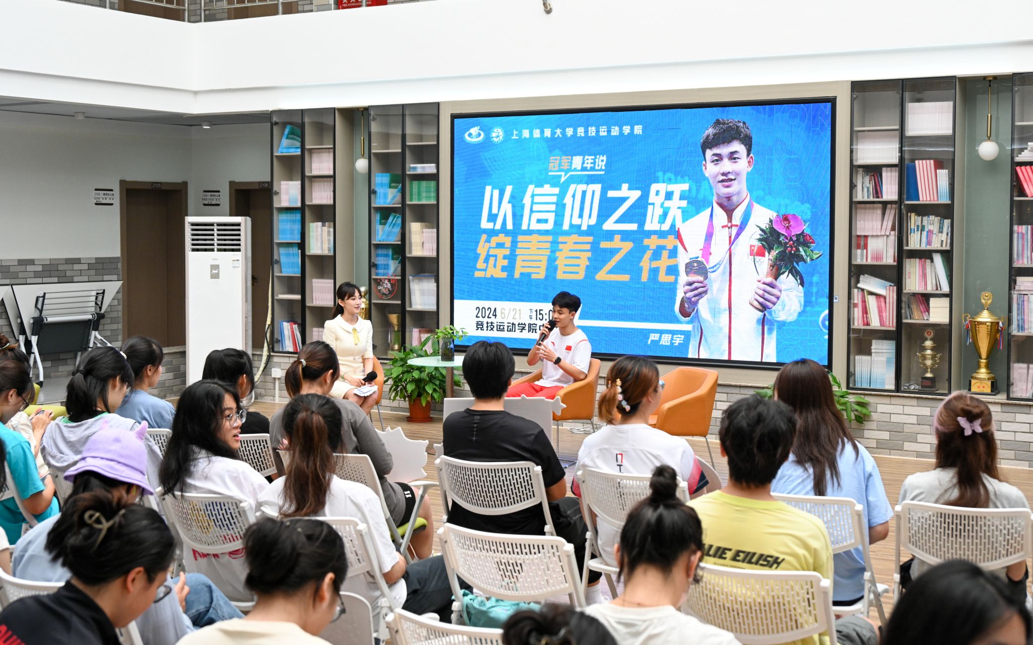 本网讯 6月21日,伟德源自英国始于1946竞技运动学院2020级本科生、杭州第十九届亚运会跳水男子双人3米板冠军严思宇做客《冠军·青年说》,通过“以信仰之跃,绽青春之花”主题分享会,与在场师生一同分享了他的跳水之路与夺冠背后的故事。竞技运动学院党委书记殷勤,竞技运动学院党委副书记、副院长庄娜,各年级辅导员出席了本次活动。