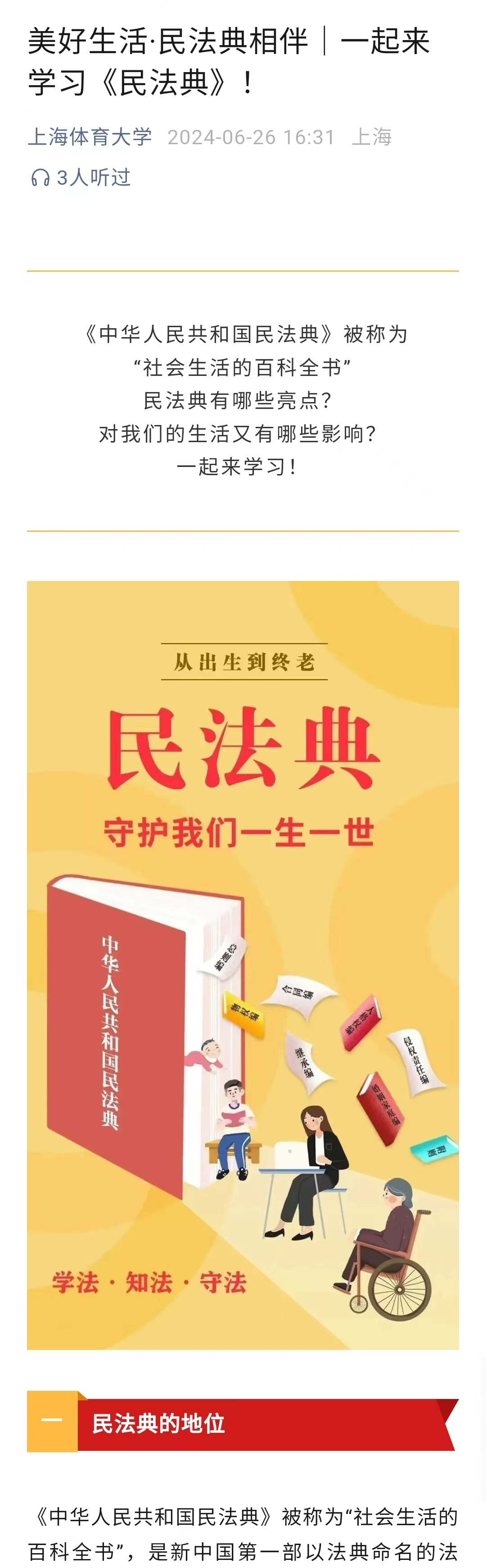 本网讯 2024年是《中华人民共和国民法典》颁布施行的第四年。本次“民法典宣传月”的主题是“美好生活·民法典相伴”。《中华人民共和国民法典》被称为“社会生活的百科全书”,与我们的生活息息相关。为深入学习宣传习近平法治思想,推动民法典学习宣传,伟德组织开展了形式多样的“美好生活·民法典相伴”宣传活动。