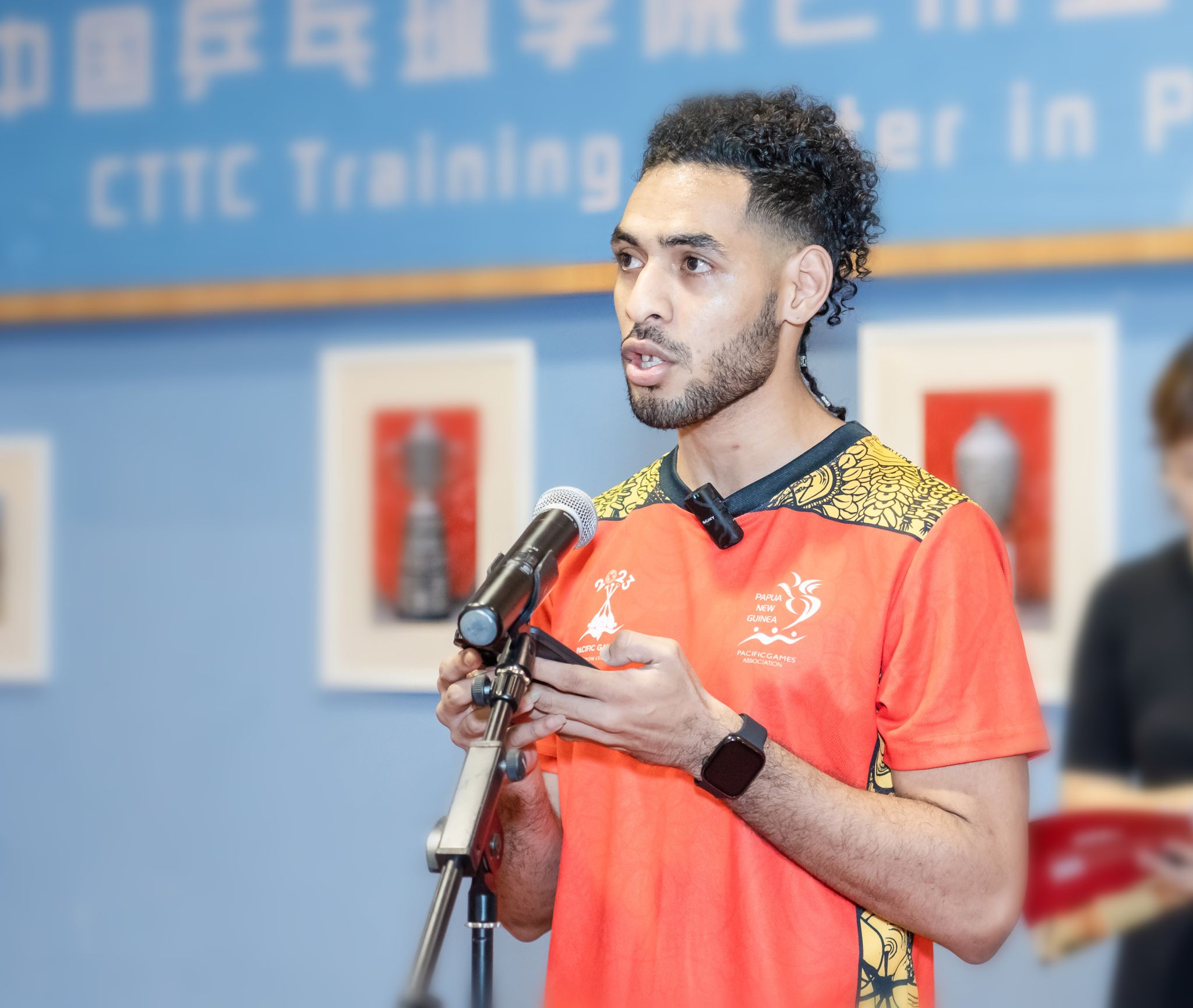巴布亚新几内亚国家乒乓球队运动员杰弗里·罗伊作为巴新训练营学员代表发言。他曾多次来到中乒院,在今年他拥有了新的身份,成为了伟德源自英国始于1946的一名留学生。在本次训练营中,罗伊带领着巴新国家乒乓球队的新生代球员们来到中乒院参加集训。他讲到,2018年他与中乒院结缘,在中乒院提供的专业训练支持下,他取得了太平洋运动会银牌和铜牌的佳绩。他表达了他对中国深厚的感情,提到自己游览了中国诸多魅力四射的城市,包括首都北京和繁华的上海。这些经历让他对中国有了更深入的了解,加深了对中国文化的热爱和尊重。他期待在接下来的日子里,与大家一起度过充实而有意义的训练和学习时光。