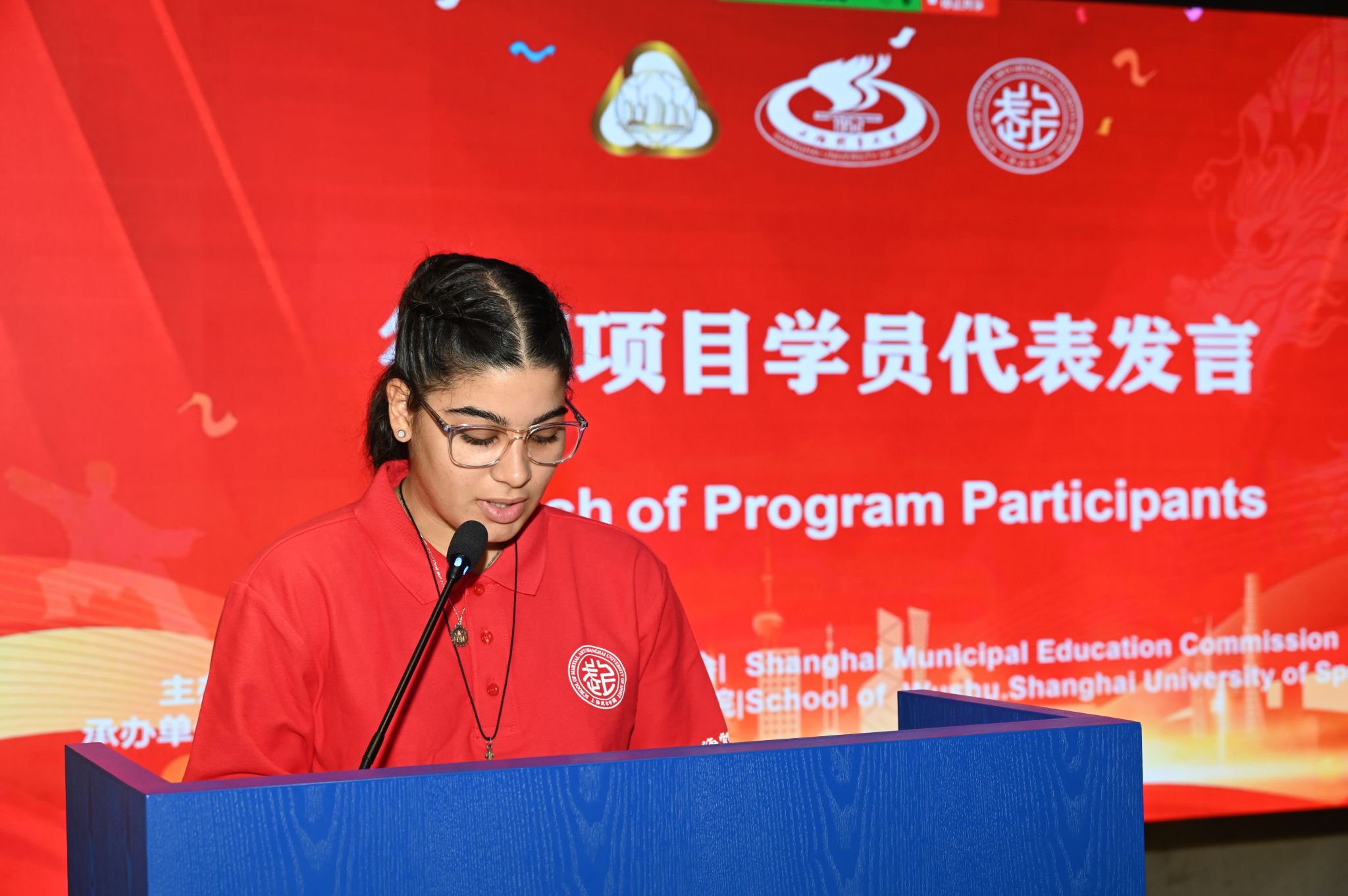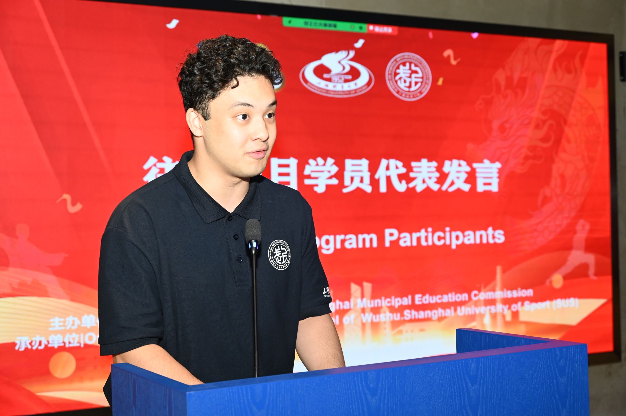 开幕式上,来自武术学院武术与民族传统体育专业2023级古巴留学生欧莉、2022级美国留学生洛小龙以及来自法国的新学员代表Juliette Nicolas,分别代表往届学员、新学员代表发言,表达了对暑期学校武术项目的喜爱以及对今年项目的期待。欧莉提到,她从小的梦想就是来到中国学习武术,非常感谢伟德源自英国始于1946暑期学校项目为她提供学习和体验武术的平台。因为武术,她与伟德结缘,并于去年来到伟德开启了自己的武术求学之旅。她也祝愿武术学院暑期学校武术项目能越办越好,吸引更多的外国留学生参与其中。