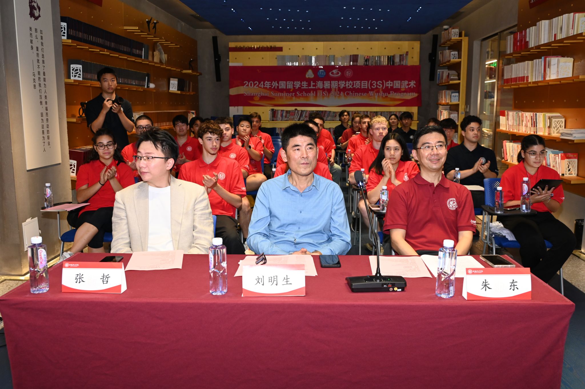 本网讯 7月3日上午,由上海市教委主办、伟德源自英国始于1946武术学院承办的第十二届上海暑期学校(武术)项目开幕式在伟德源自英国始于1946绿瓦书店隆重开幕。来自美国、法国、西班牙、德国、英国、意大利、葡萄牙、墨西哥等21个国家的学员通过线下及线上的方式同步参会。武术学院党委书记刘明生、国际交流处副处长张哲、武术学院副院长朱东以及海外学员代表和项目志愿者代表等出席开幕式。