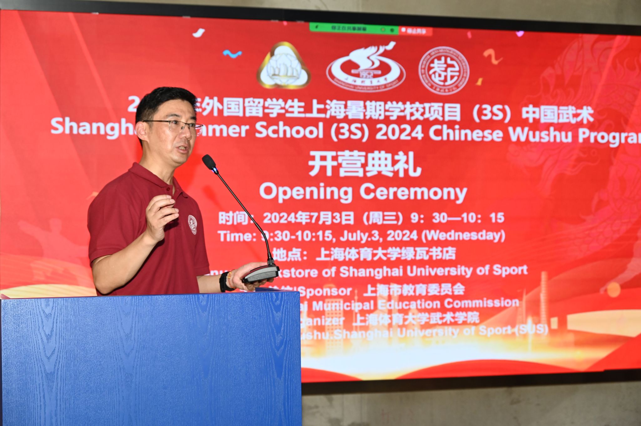 开幕式上,武术学院党委书记刘明生致欢迎辞。他指出,今年是伟德第十二次承办该项目,非常高兴能迎来来自世界各国的学员前来伟德学习武术。本次项目在上海市教委的大力支持之下,将继续沿袭往届优秀传统,发挥线上线下联动优势,为参训学员提供武术专项训练、传统文化体验、汉语入门课程、城市人文行走等具有中国特色的培训内容,以武术纽带实现人文交流,形成武术互鉴、信息共享、共同成长的国际大学生共同体,打开以中国武术为底色的跨文化传播新思路。