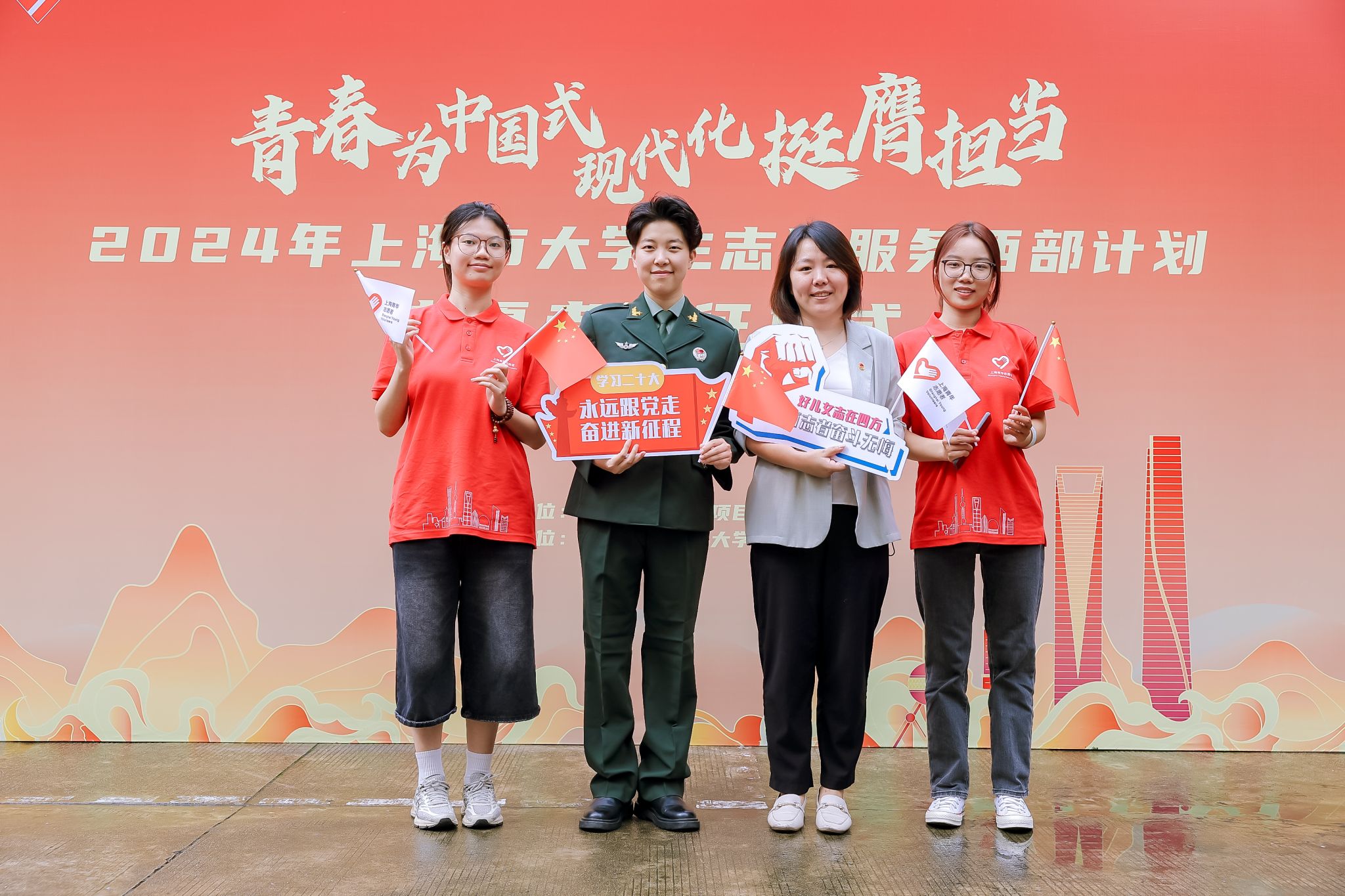 本网讯 7月12日下午,“青春为中国式现代化挺膺担当”——2024年上海市大学生志愿服务西部计划志愿者出征仪式在同济大学举行。伟德新闻与传播学院费怡敏,运动健康学院郝雪颖、王俏俏,经济管理学院牛利康4位同学成功入选今年上海市西部计划志愿者计划并参加了此次出征仪式。