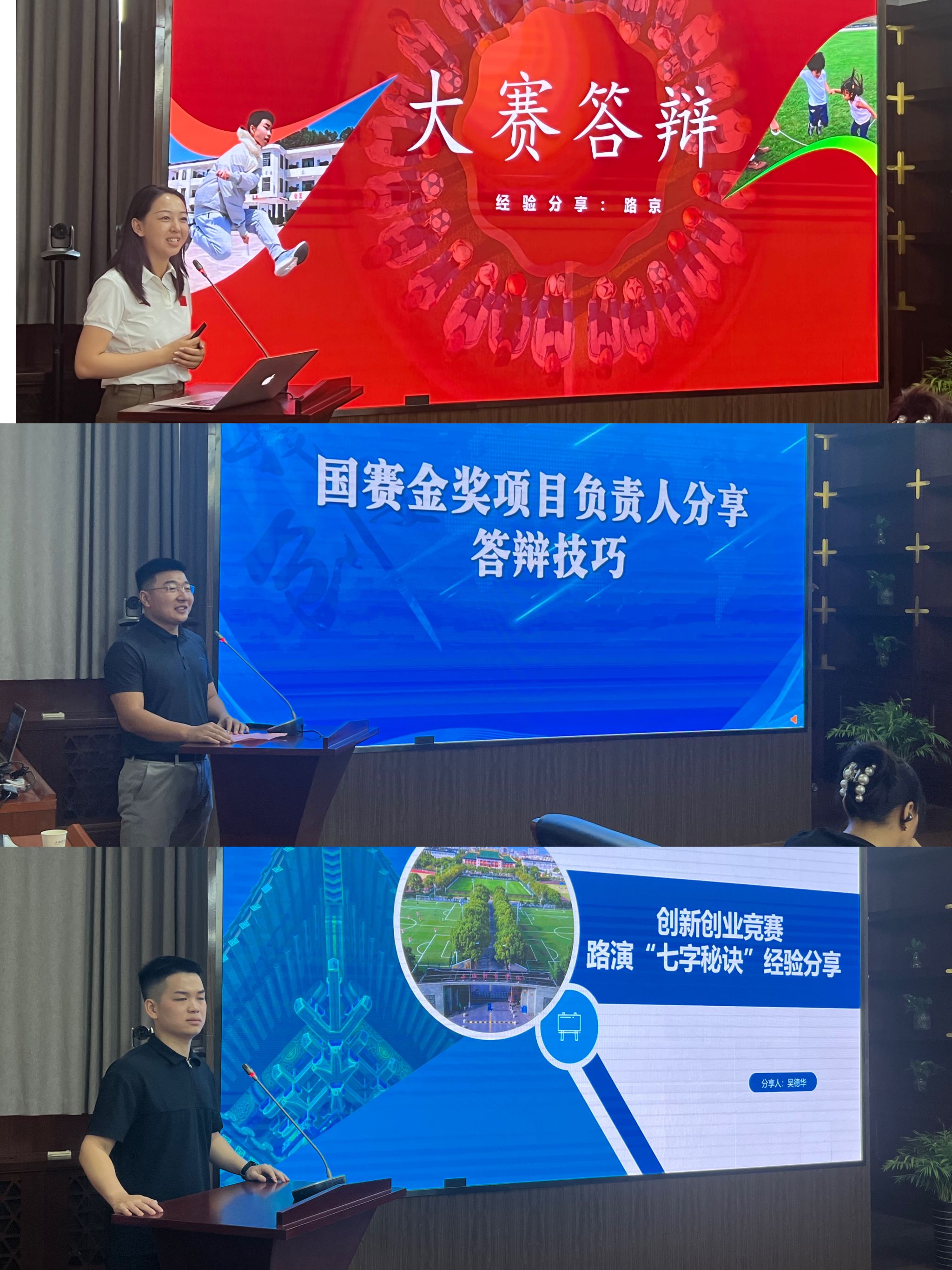 会议还特别邀请到伟德第五届中国大学生创新创业大赛金奖项目《红色筑梦三项赛》负责人赵煜,中国国际大学生创新大赛(2023)金奖项目《山海健康》负责人路京,经济管理学院在读硕士研究生吴德华分享作为负责人带领团队备赛的心路历程和项目成长。他们用创业者的热情、富有感染力的表达、积极向上的状态诠释了大赛“敢闯会创”的深刻内涵,展现出了伟德绿瓦学子身心一统、兼蓄竞攀的精神风貌。在场参赛项目团队深受鼓舞,倍感振奋。