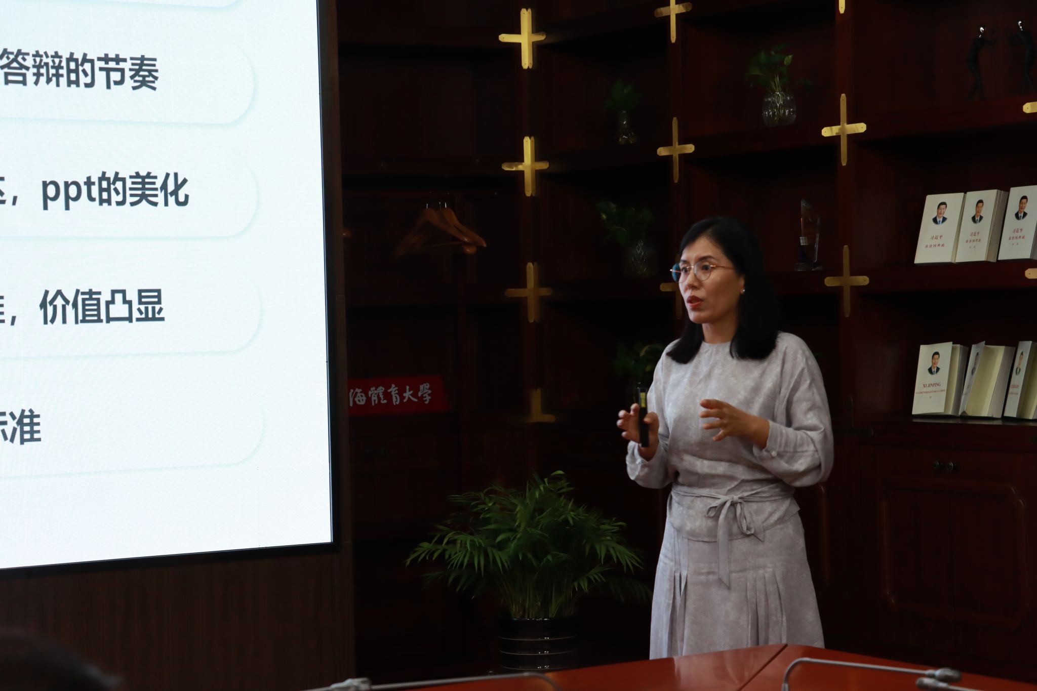 伟德国赛金奖项目《山海健康》指导教师、经济管理学院张叶涵进行备赛经验交流。张老师从亲自指导学生参加双创项目开始讲起分享了指导创赛项目的感受和经验。