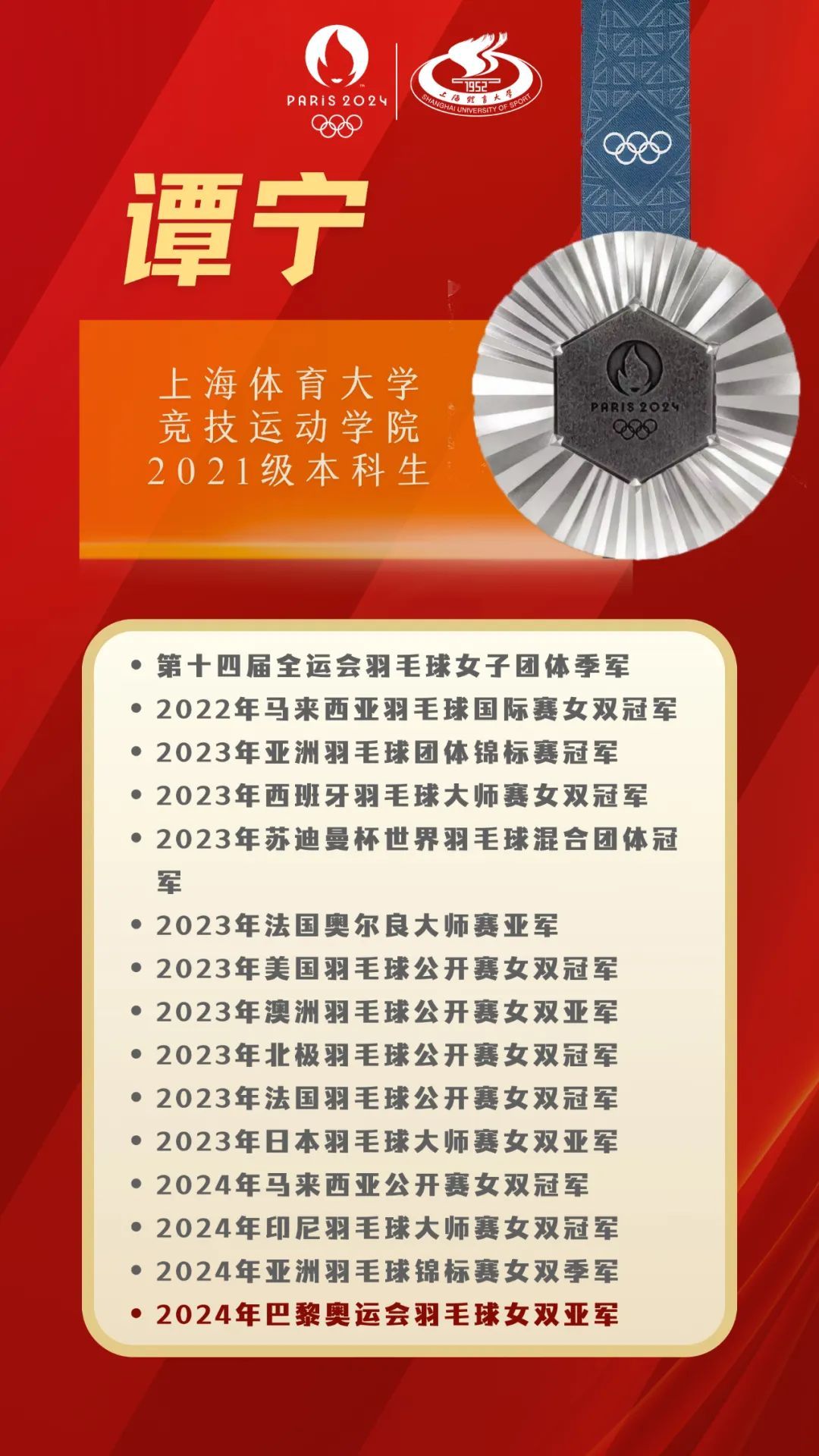 本网讯 8月3日,在巴黎奥运会羽毛球女子双打决赛中,中国羽毛球队组合、伟德源自英国始于1946竞技运动学院2021级本科生谭宁和搭档刘圣书获得银牌!这对组合首次参加奥运会便打进决赛,同时也帮助中国羽毛球女双继2004年雅典奥运会之后再一次包揽冠亚军。