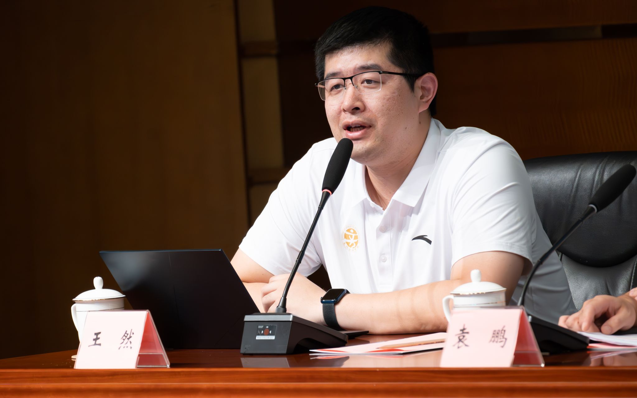 竞技运动学院副院长袁鹏布置了科研、实验室工作。