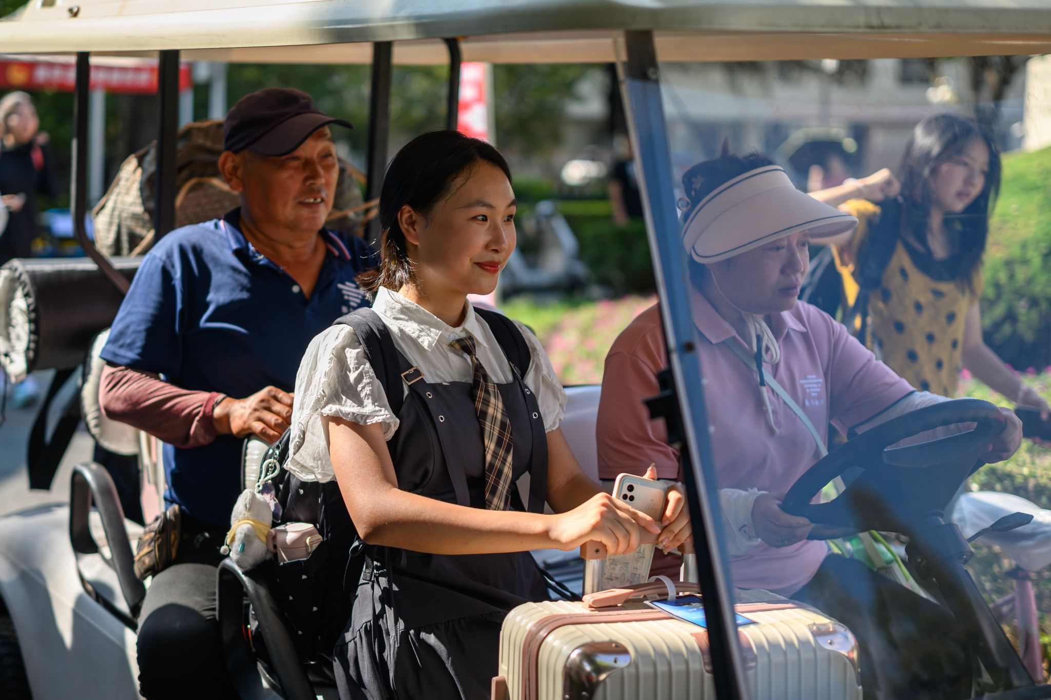 在恒仁路与清源环路交汇处,交警们正耐心地协助疏导交通,为接送新生的亲友车辆提供指引。校园内,沪东高校派出所的警官们正不遗余力地向新生们普及防范诈骗的知识。校园内也开启了“爱心帮帮车”服务,让新生们能够直接抵宿舍,也时不时传来他们温暖的话语“需要帮忙,请招呼我!”校园内每一处细节、每一秒的顺畅都传递着对新生们的关怀。