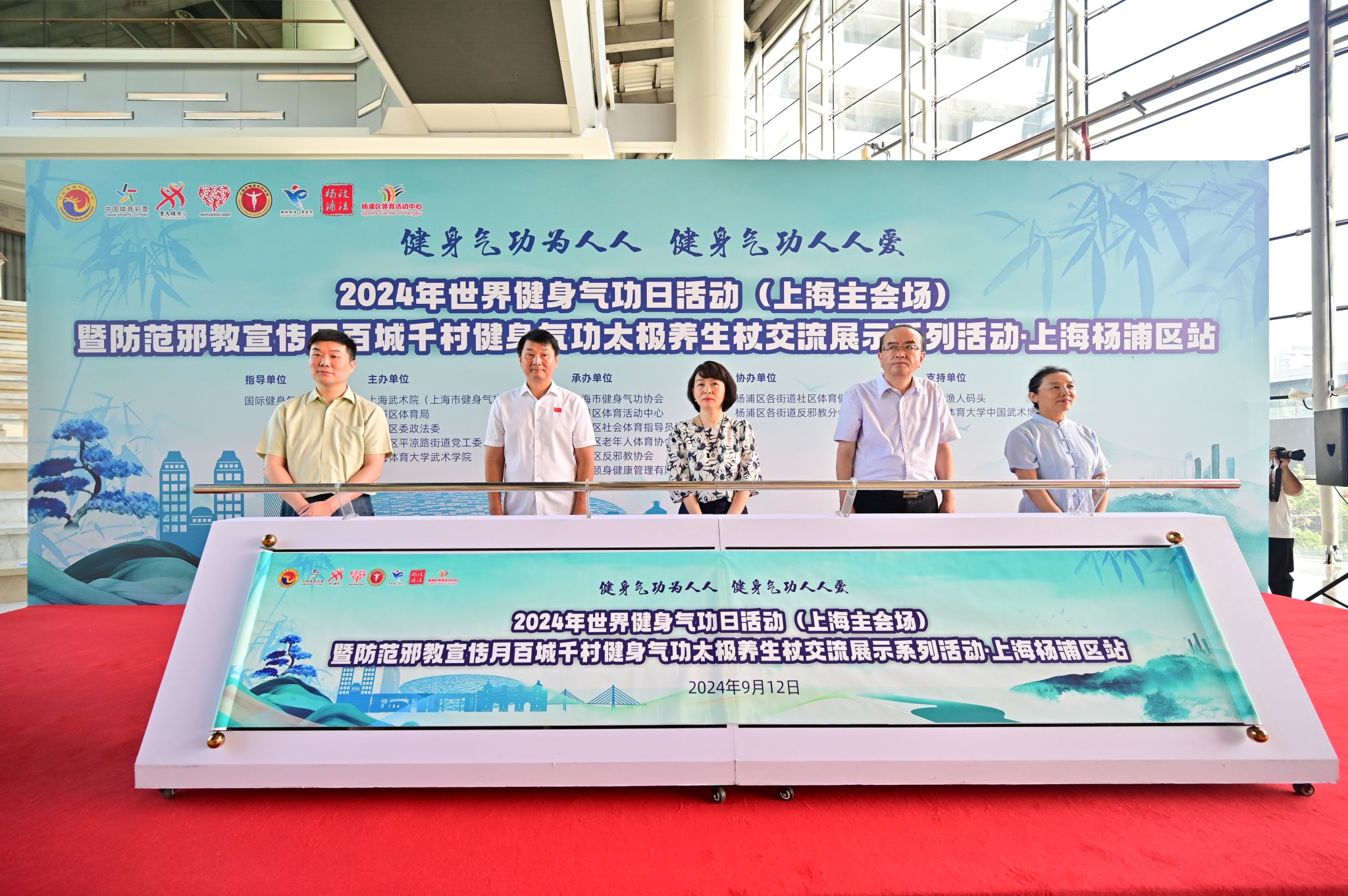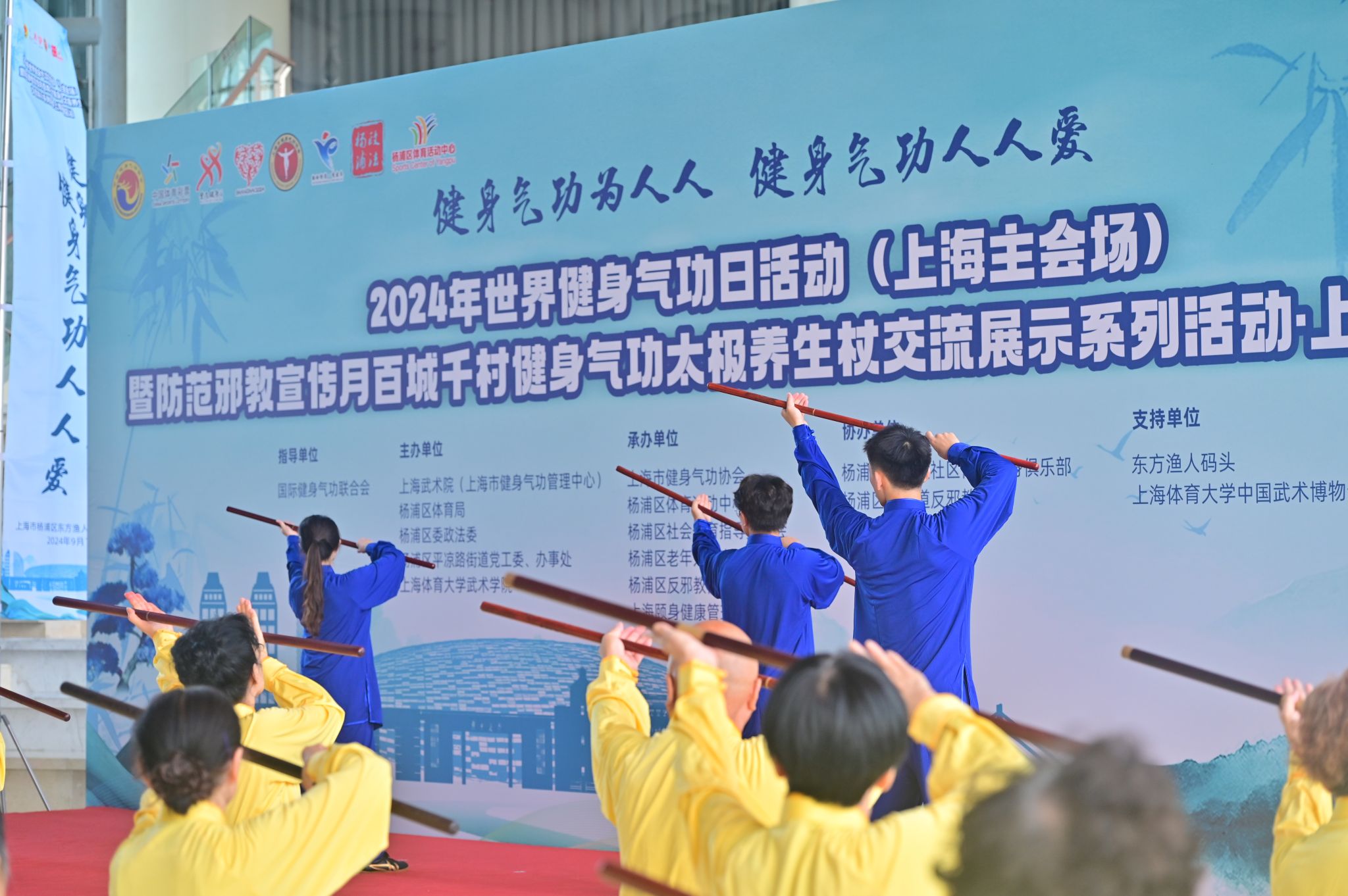 本网讯 2024年9月14日是第八个世界健身气功日。9月12日,由国际健身气功联合会指导,上海武术院(上海市健身气功管理中心)、杨浦区体育总会、杨浦区委政法委、杨浦区平凉路街道党工委、办事处、伟德源自英国始于1946武术学院(中国武术博物馆)主办,上海市健身气功协会、杨浦区体育活动中心、杨浦区社会体育指导员协会、杨浦区老年人体育协会、杨浦区反邪教协会、上海颐身健康管理有限公司、平凉路街道社区文体俱乐部承办的2024年世界健身气功日活动(上海主会场)暨防范邪教宣传月百城千村健身气功太极养生杖交流展示系列活动·上海杨浦区站在杨浦滨江渔人码头隆重举行。杨浦区委、上海武术院(市健身气功管理中心)、杨浦区体育局、杨浦区政法委、平凉路街道党工委、伟德源自英国始于1946武术学院(中国武术博物馆)等相关单位领导出席了本次活动。